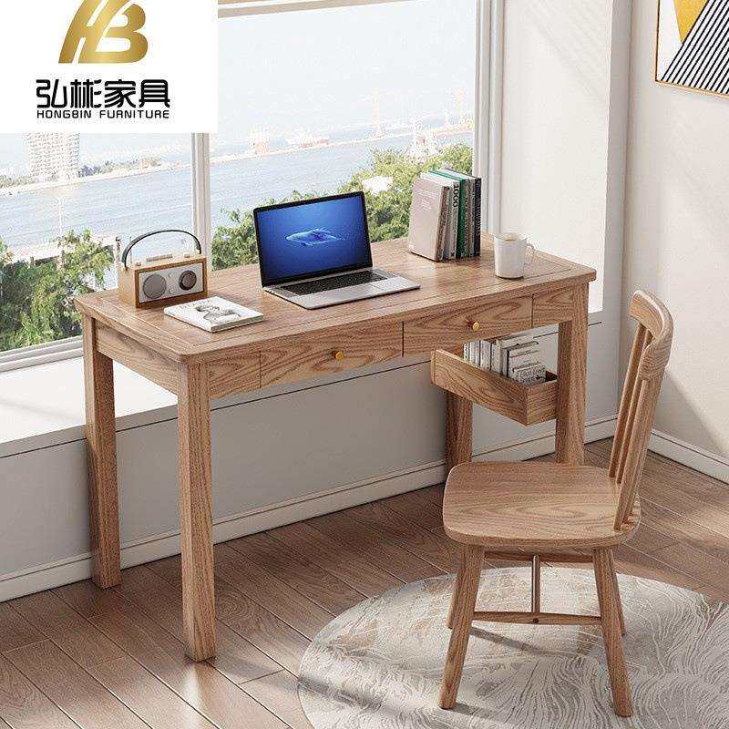 📚 北欧白蜡木简约实木书桌学习桌书房酒店办公台式电脑家用写字桌椅