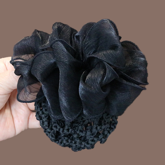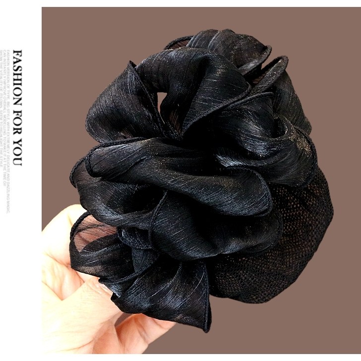 📚 韩版优雅黑色雪纱发网新款职业头花女跳舞丸子头盘发网兜妈妈发夹