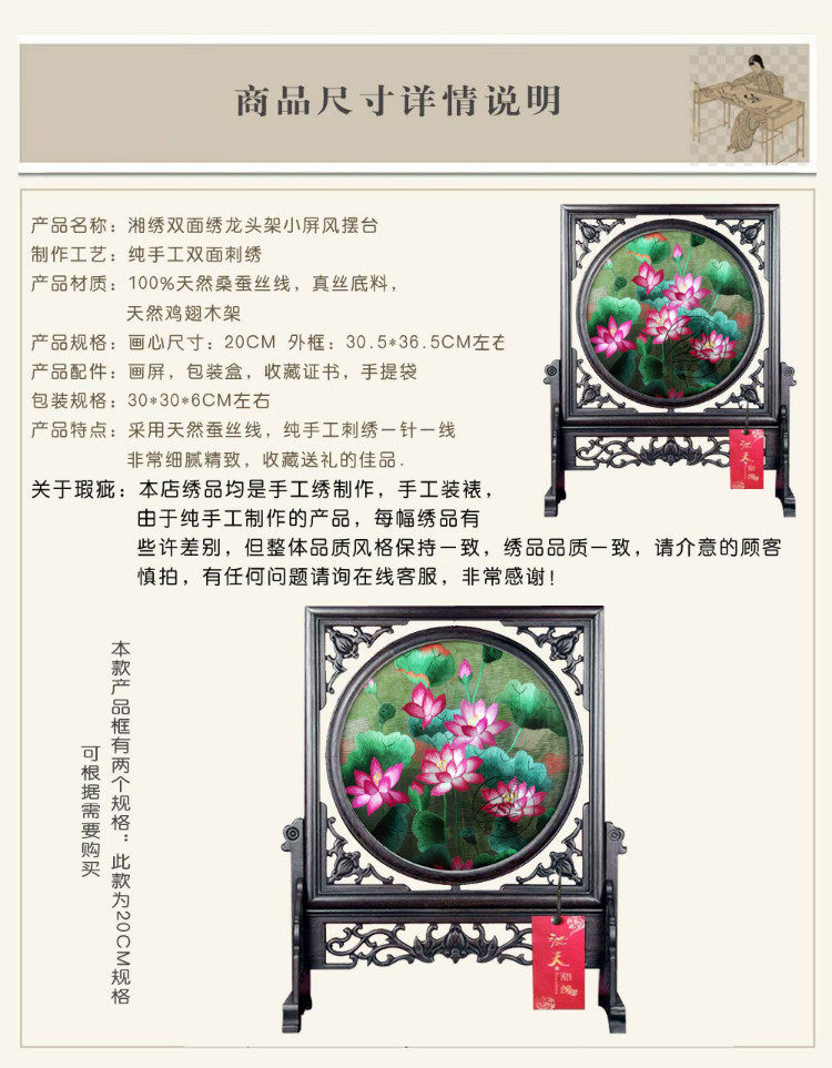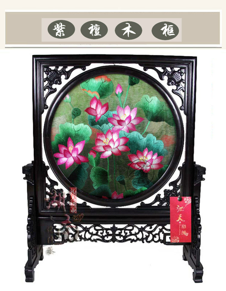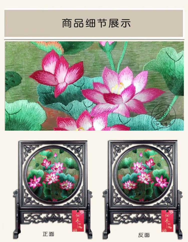 📚 湘绣小摆件精品双面绣纯手工刺绣写意荷花书房装饰工艺术品苏绣