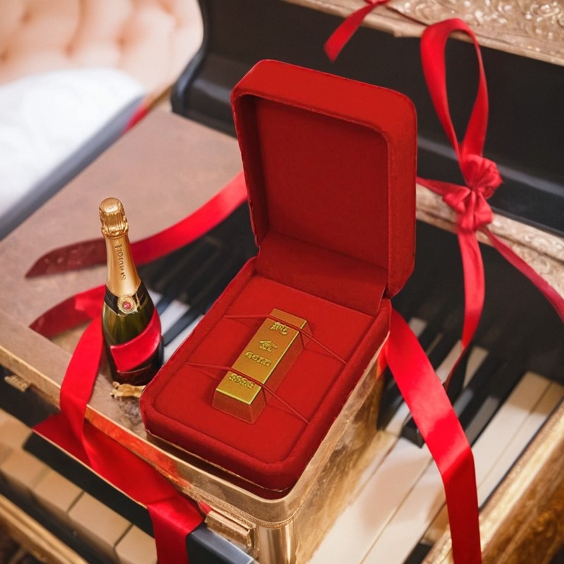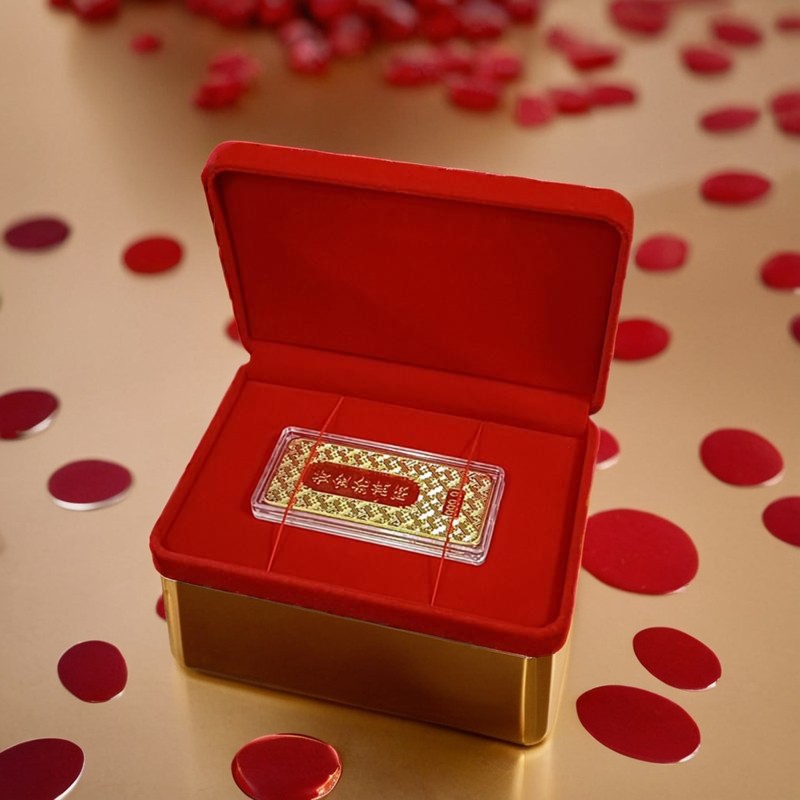 📚 新年高档丝绒布黄金盒子金条块钞10 30克60克999足金大饼收纳空盒