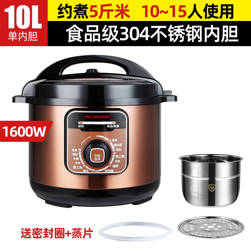 📚 红双喜304不锈钢电压力锅家用8L自动高压锅商用10L12升智能全