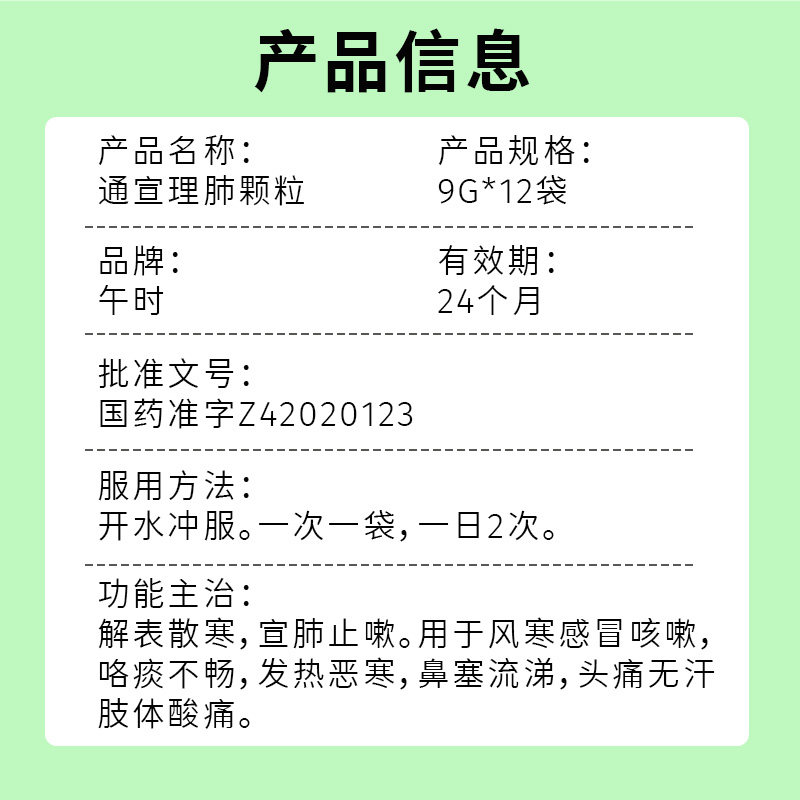 📚 通宣理肺颗粒9g*12袋感冒药咳嗽头疼无汗发热鼻塞流鼻涕肢体酸痛