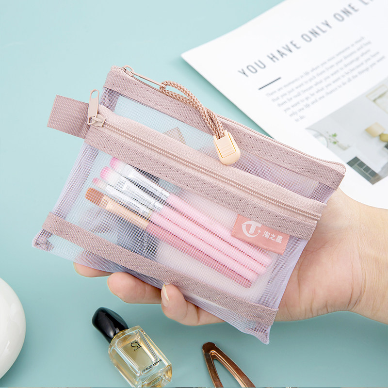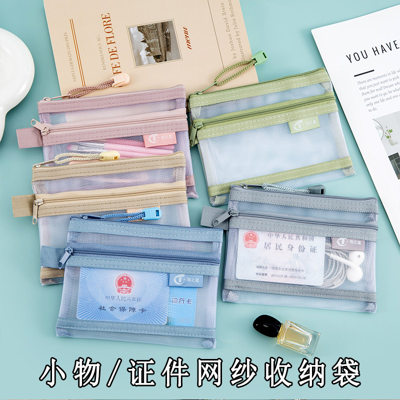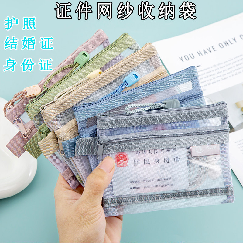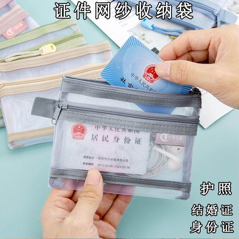 📚 护照收纳袋证件收纳包双层网纱保护套拉链文件袋零钱包家庭充电器驾驶证随身透明卡片袋多功能女士学生迷你袋