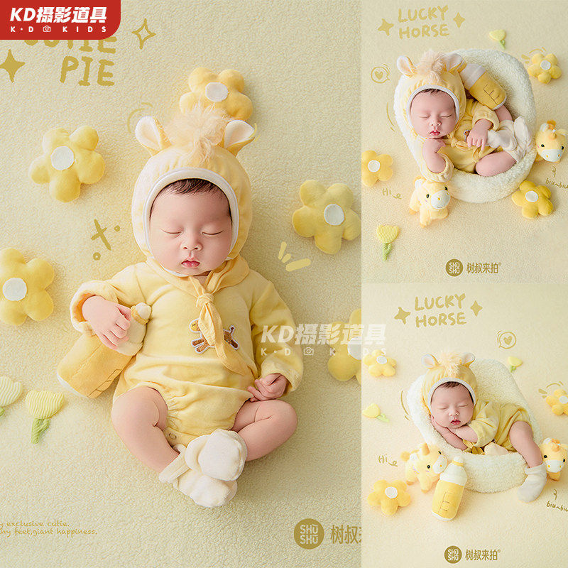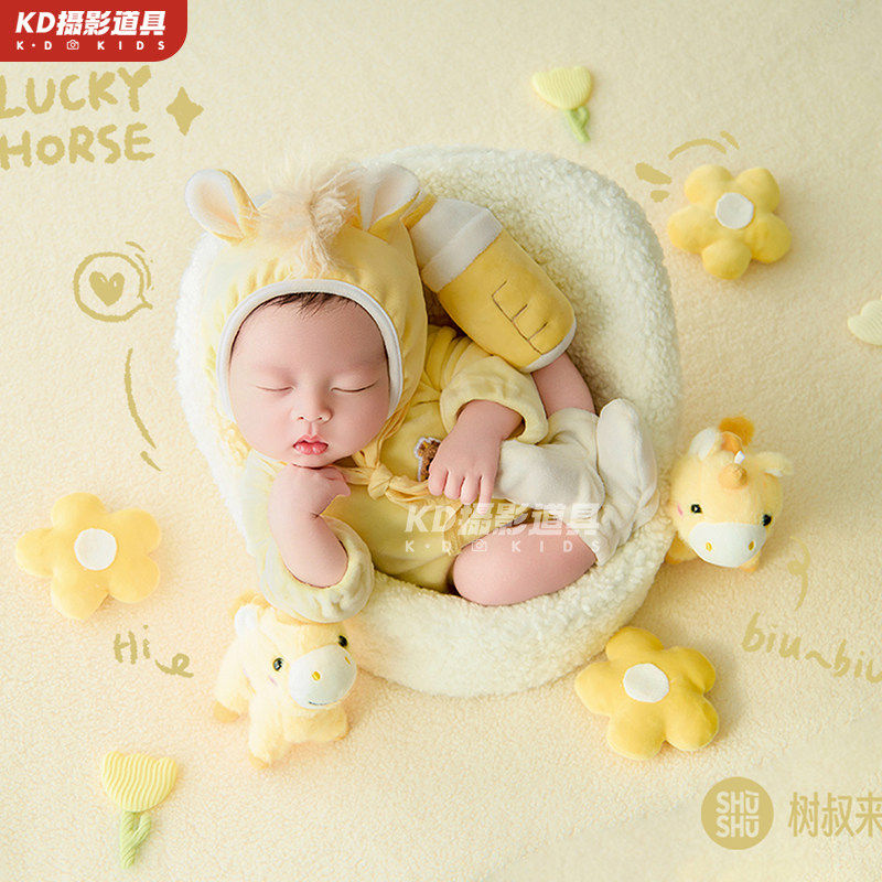 📚 2026正版满月小马道具马年新生儿摄影服装影楼马宝宝月子照主题