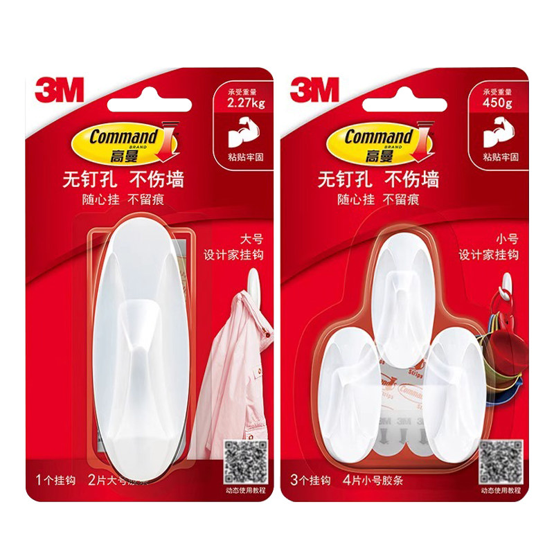 📚 3M高曼无痕挂钩家用挂画粘胶免打孔钉不伤墙壁挂浴室防水厨房粘钩