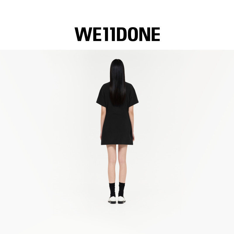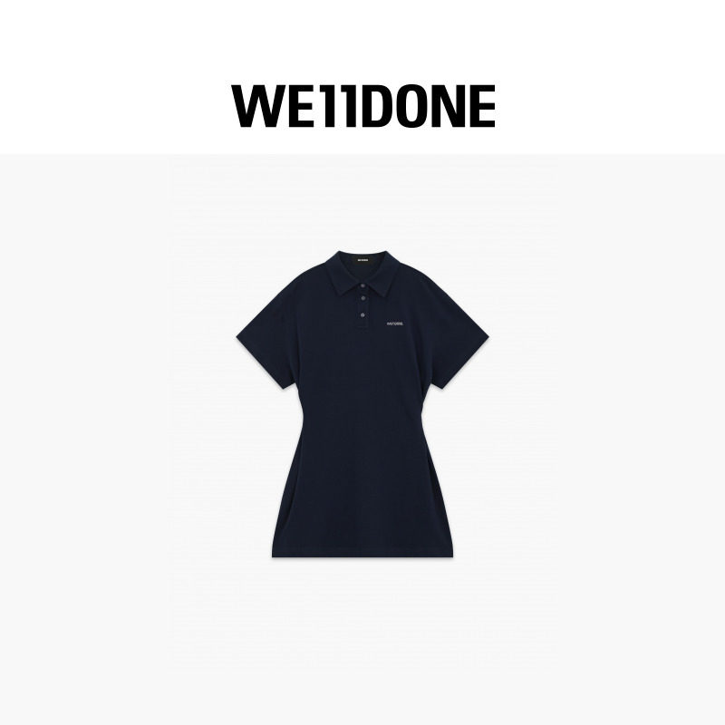 📚 WE11DONE26春季新品女士POLO领刺绣logo连衣裙简约休闲侧边褶裥