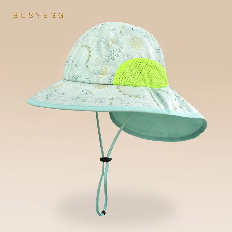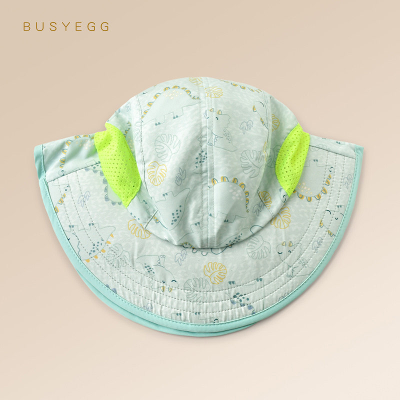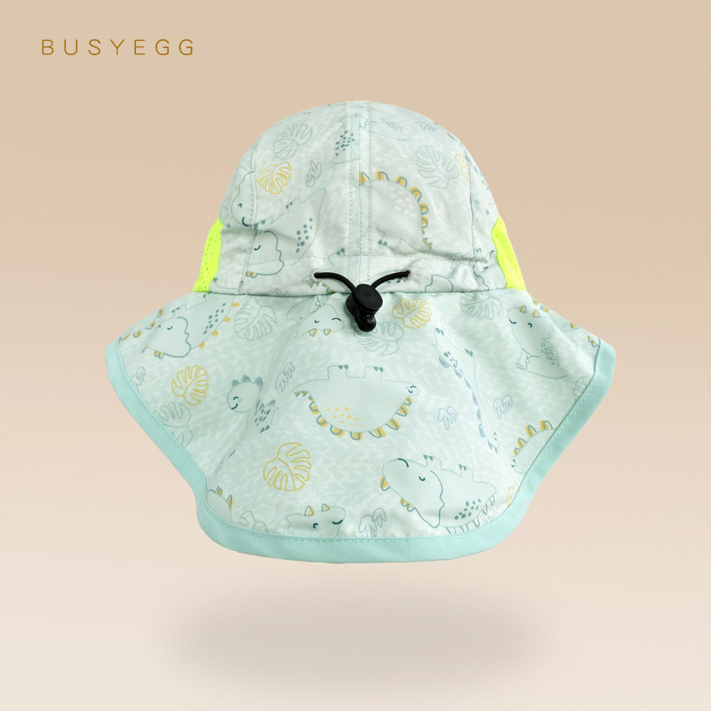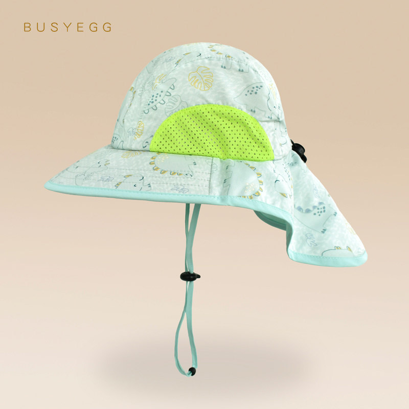 📚 清凉薄荷绿恐龙儿童防晒帽男童夏遮阳帽子网眼透气防紫外线披肩帽