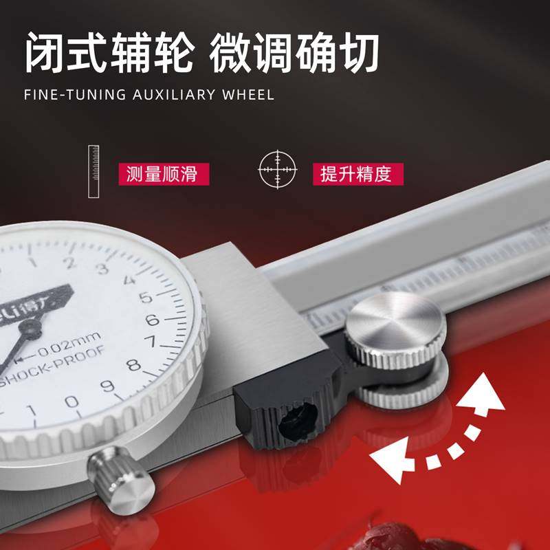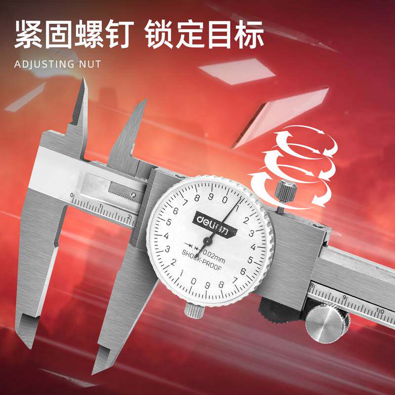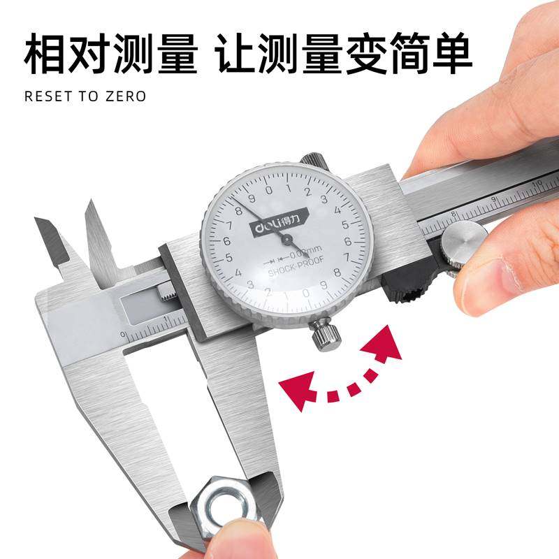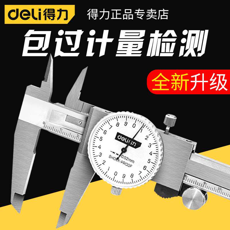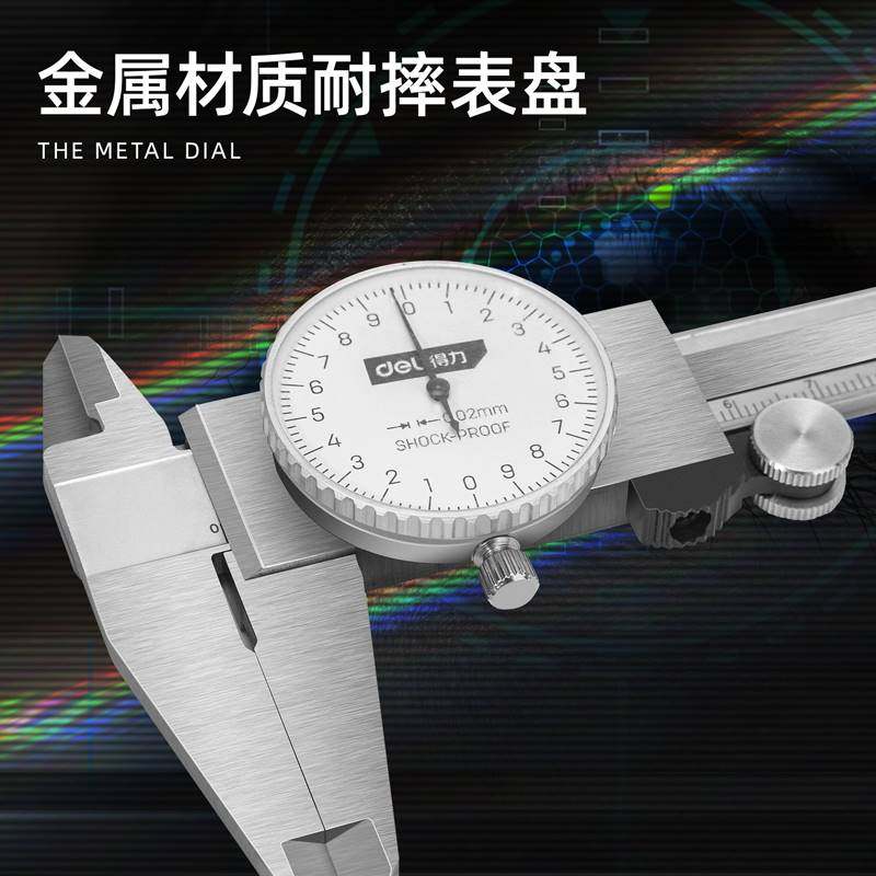 📚 得力高精度带表盘不锈钢游标卡尺防震工业级代表卡尺测量维修工具