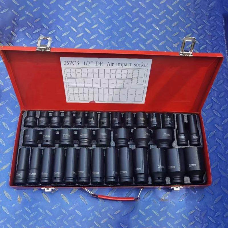 📚 1/2气动加长风炮套筒35件套小风炮套筒六角套筒维修套装