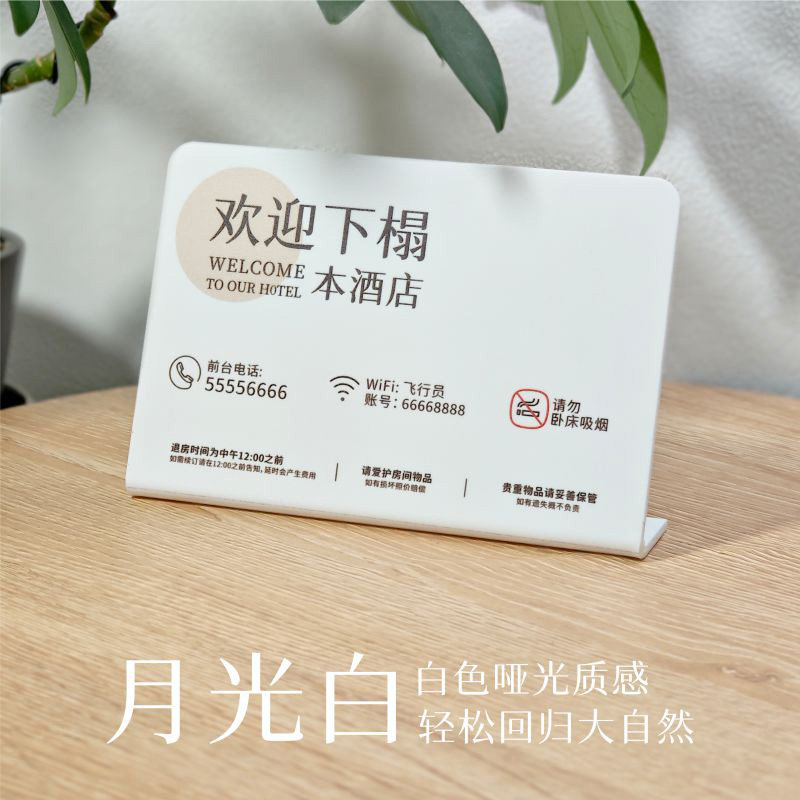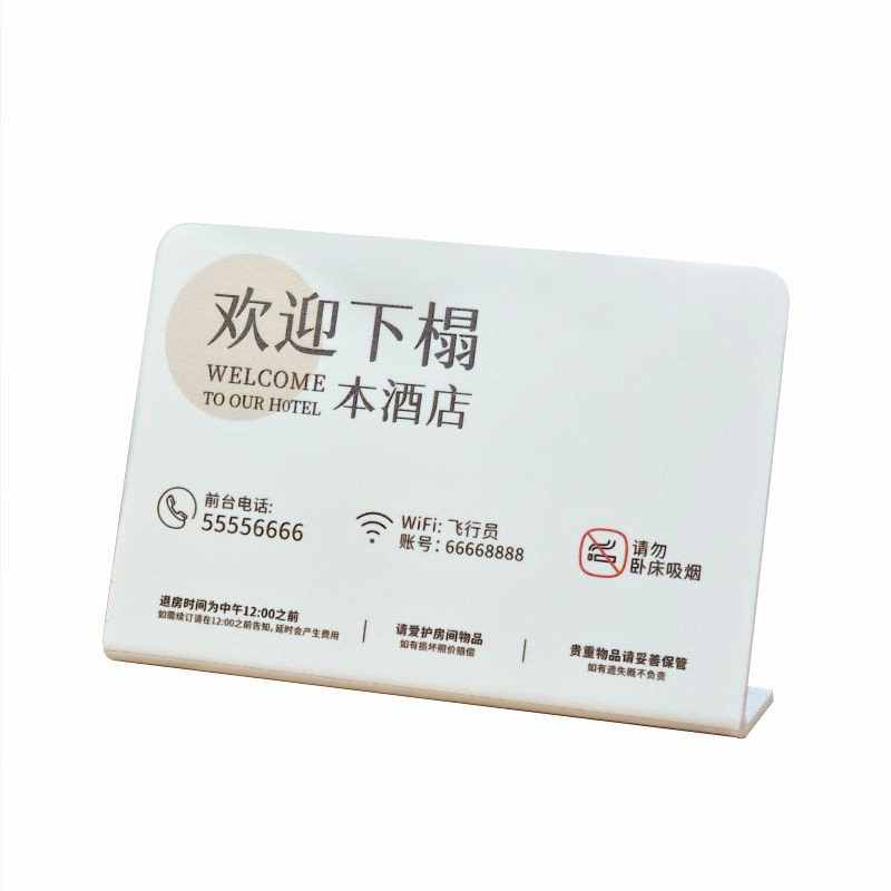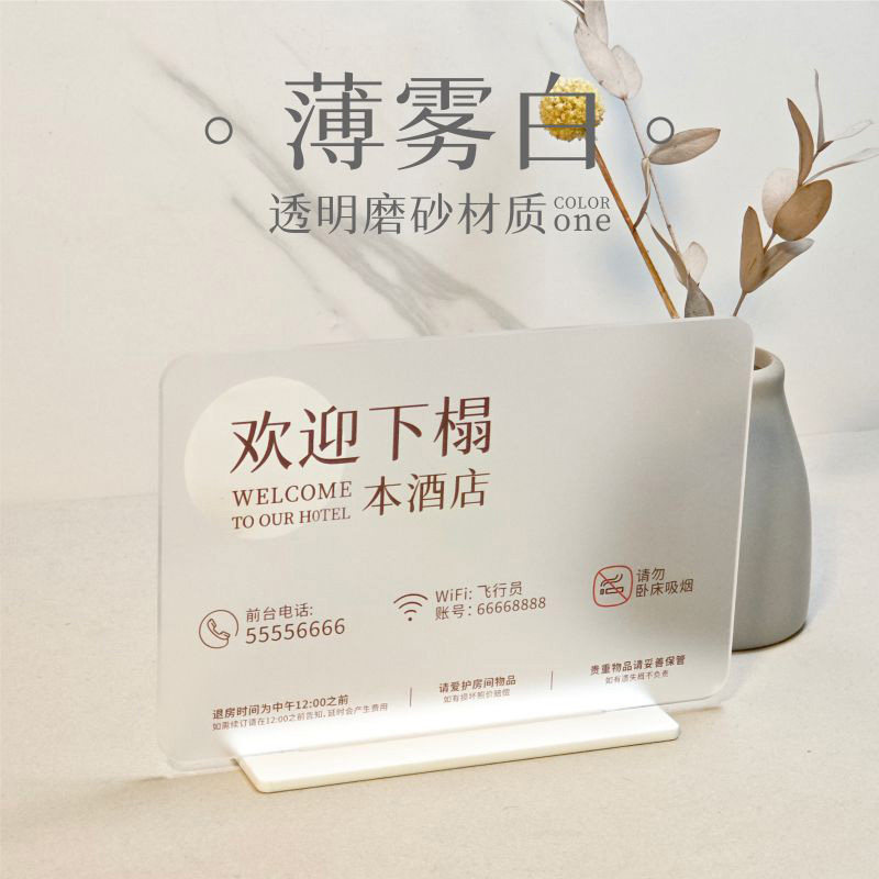 📚 定制欢迎下榻立牌酒店民宿旅馆wifi名字电话请勿吸烟提示牌亚克力