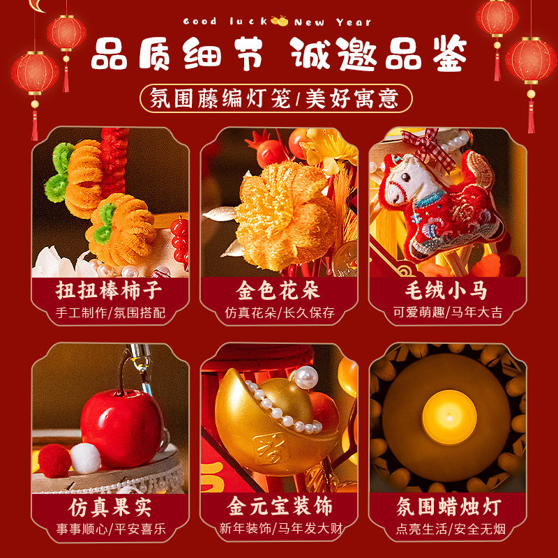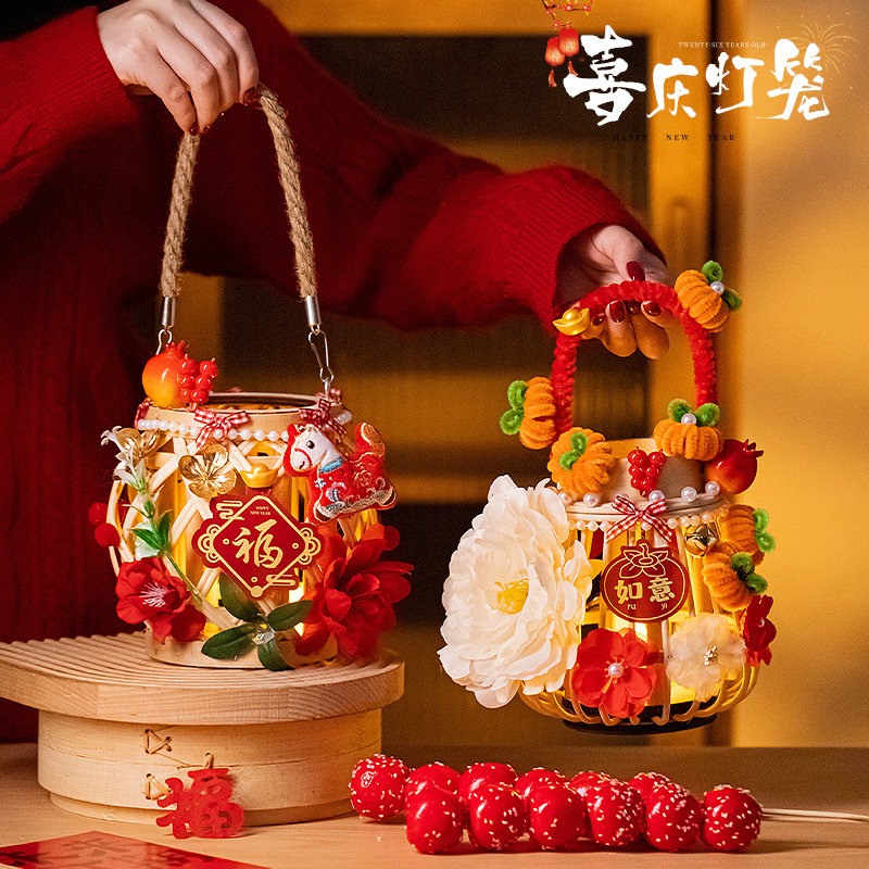 📚 2026新年元宵节马年新款儿童手提灯笼成品藤编手工diy材料花灯
