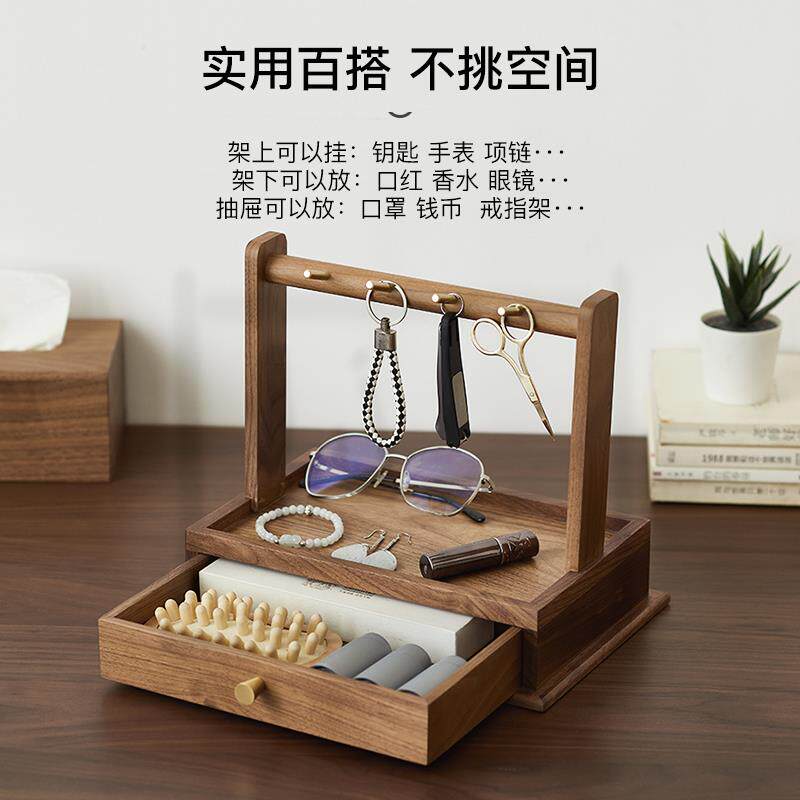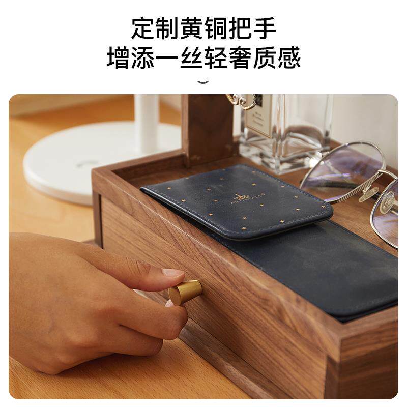 📚 高档面抽屉式收纳盒木质杂物首挂饰化钥妆品整理盒进门口玄桌关放
