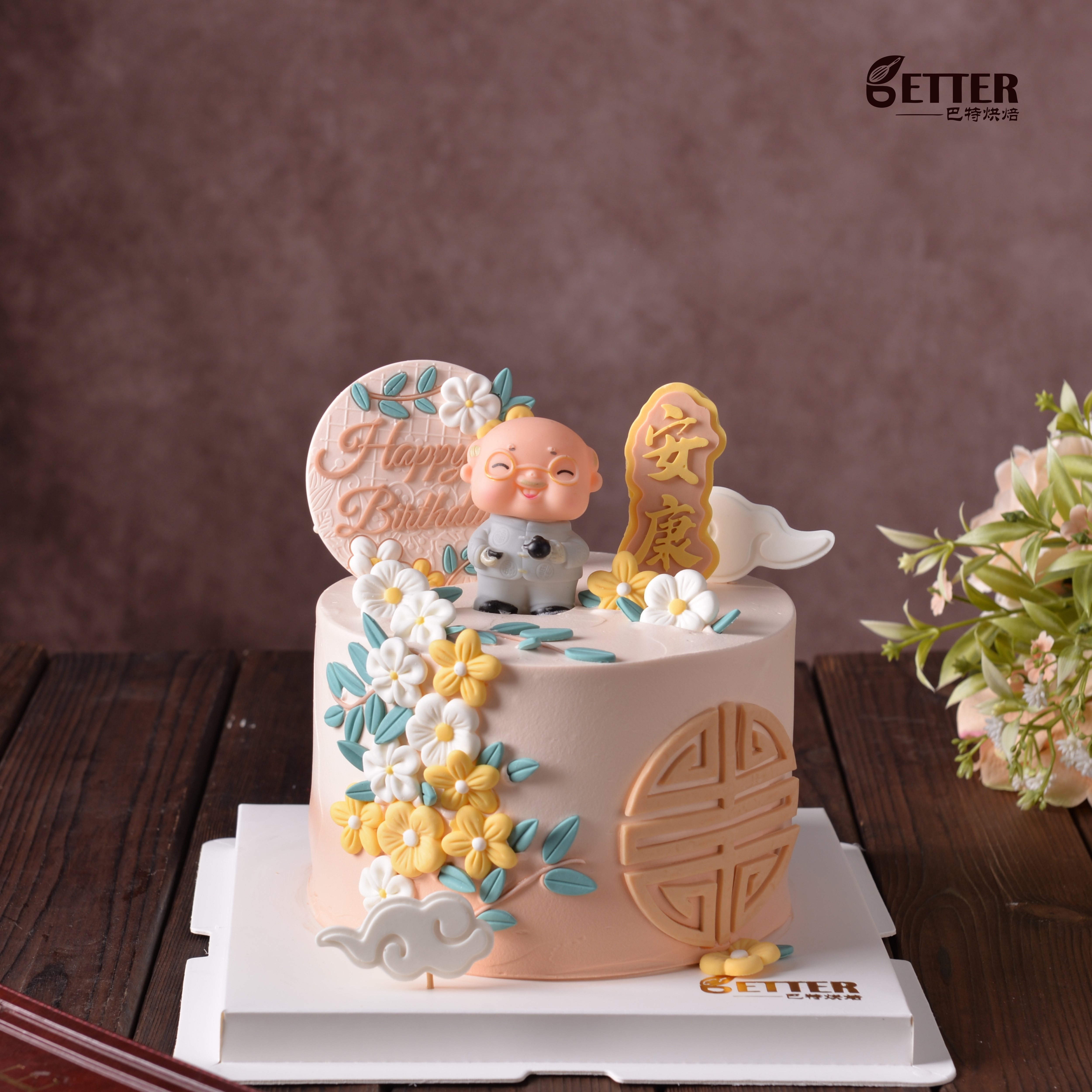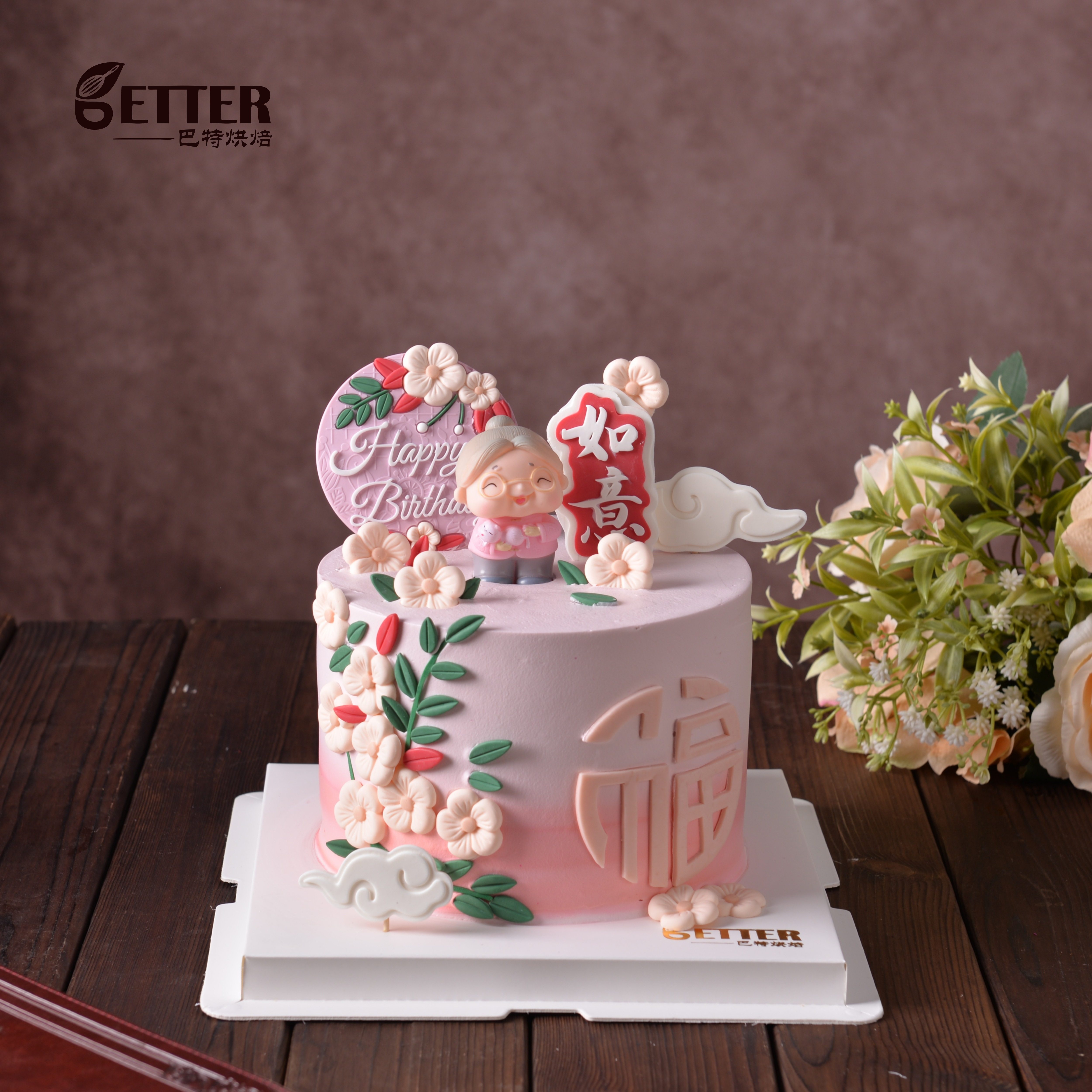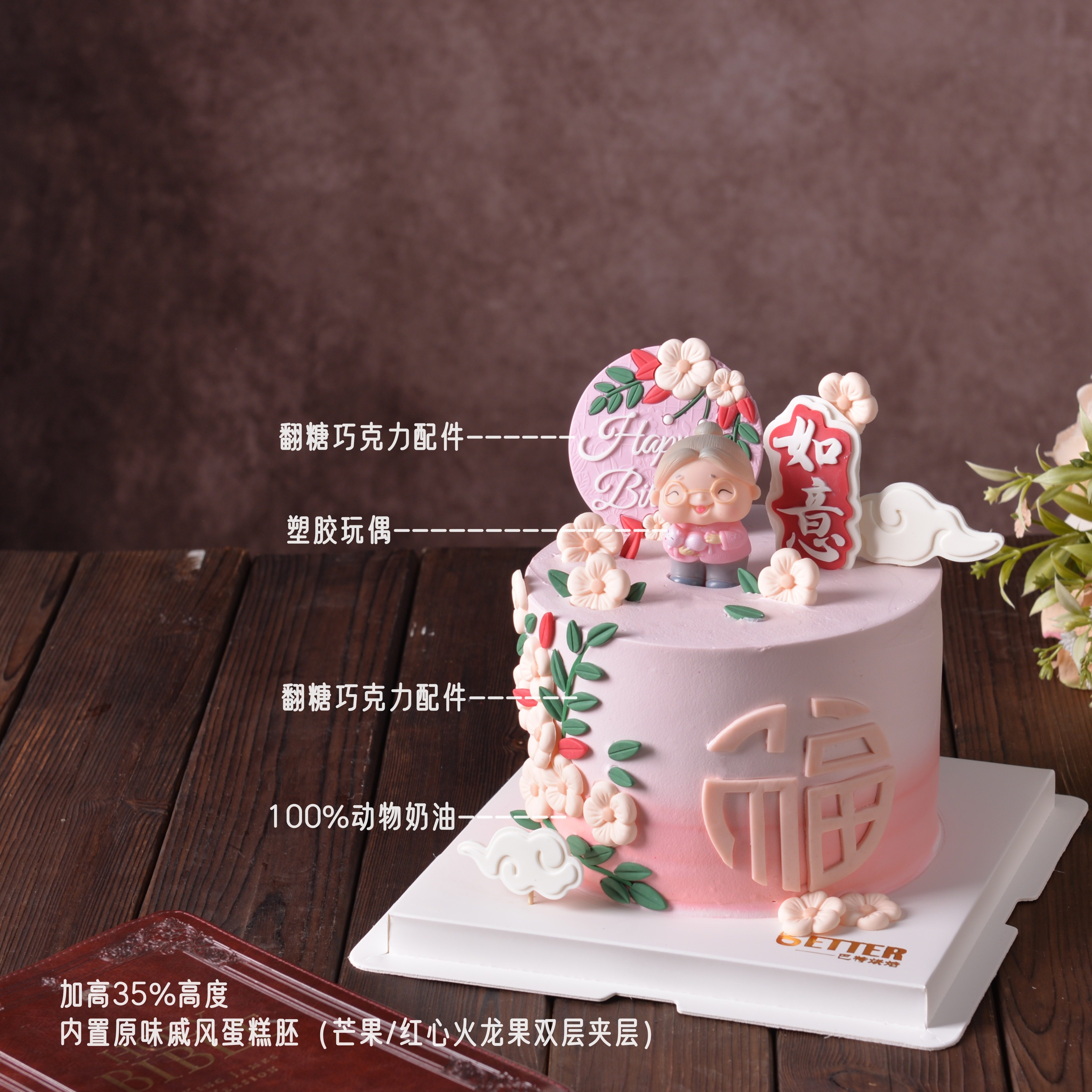 📚 中式祝寿老人生日蛋糕父母长辈翻糖奢华动物奶油蛋糕青岛同城配送