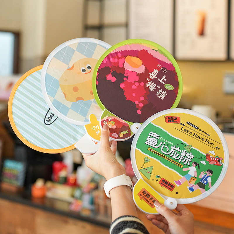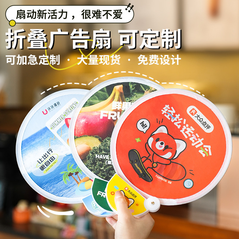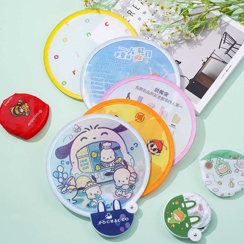 📚 飞盘扇子定制夏季网红绢布应援日式卡通广告反光折叠团扇定做logo