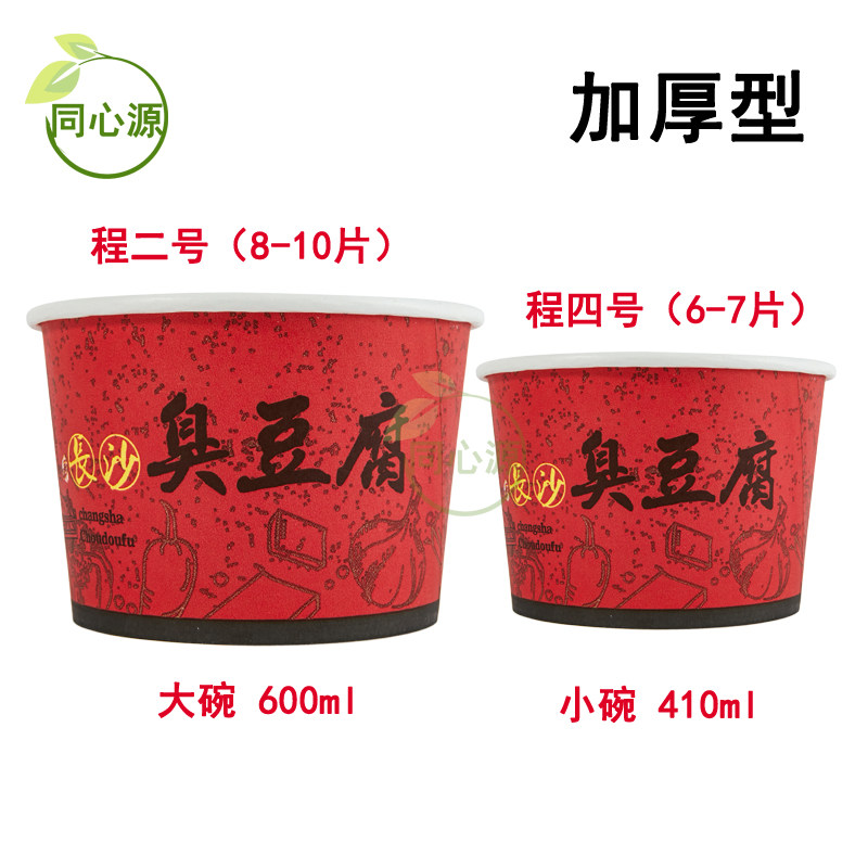 📚 同心源 长沙臭豆腐纸碗 厂家直销商用黑色红色一次性纸盒包邮盒子