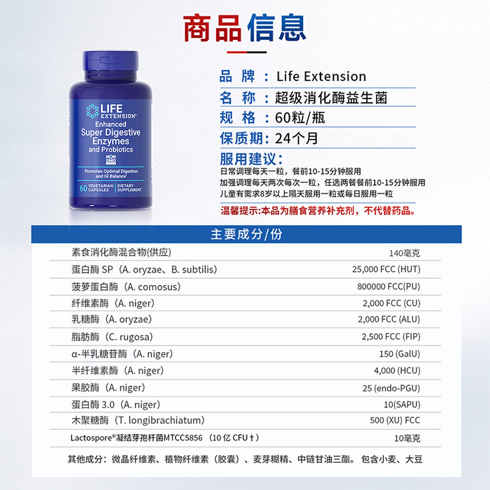 📚 香港直邮沿寿Life Extension消化酶和益生菌天然肠胃呵护