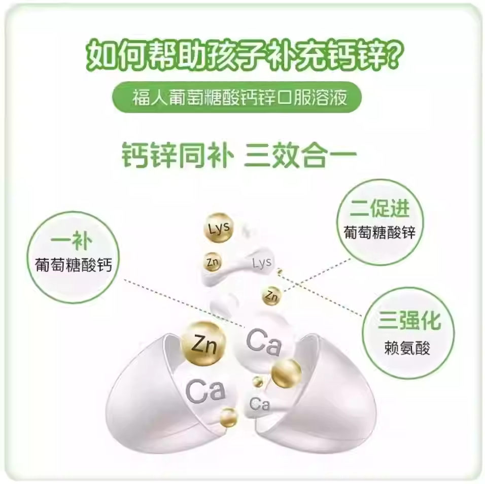 📚 福人葡萄糖酸钙锌口服溶液24支缺钙小儿发育迟缓骨质松佝偻病厌食