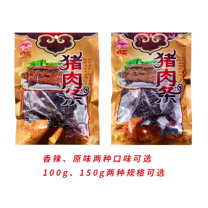 📚 广西河池特产宜州成达香辣猪肉条100g真空袋装猪肉干休闲零食包邮