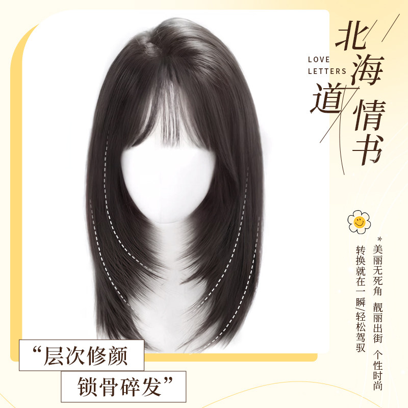 📚 假发全头套女韩系高层次锁骨发修颜减龄自然仿真发整顶短发假发套