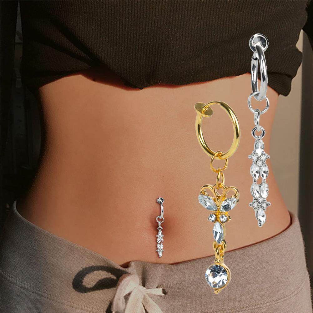 📚 Heart Fake Belly Button Ring Fake Belly Piercing Butterfly