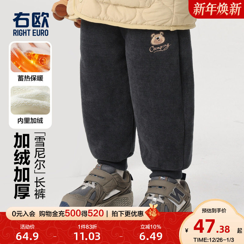 #右欧男童女童裤子 #冬季新款童装 #加绒加厚 #雪尼尔羊羔毛 #束脚长裤 #券后价64.9