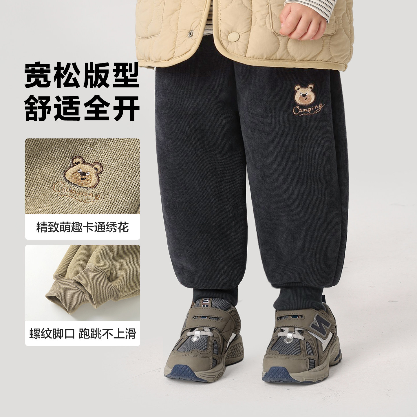 🧥材质上,这款裤子采用了加绒加厚雪尼尔羊羔毛,保暖效果超级好。即使在寒冷的冬季,孩子们也能感受到满满的温暖和舒适。