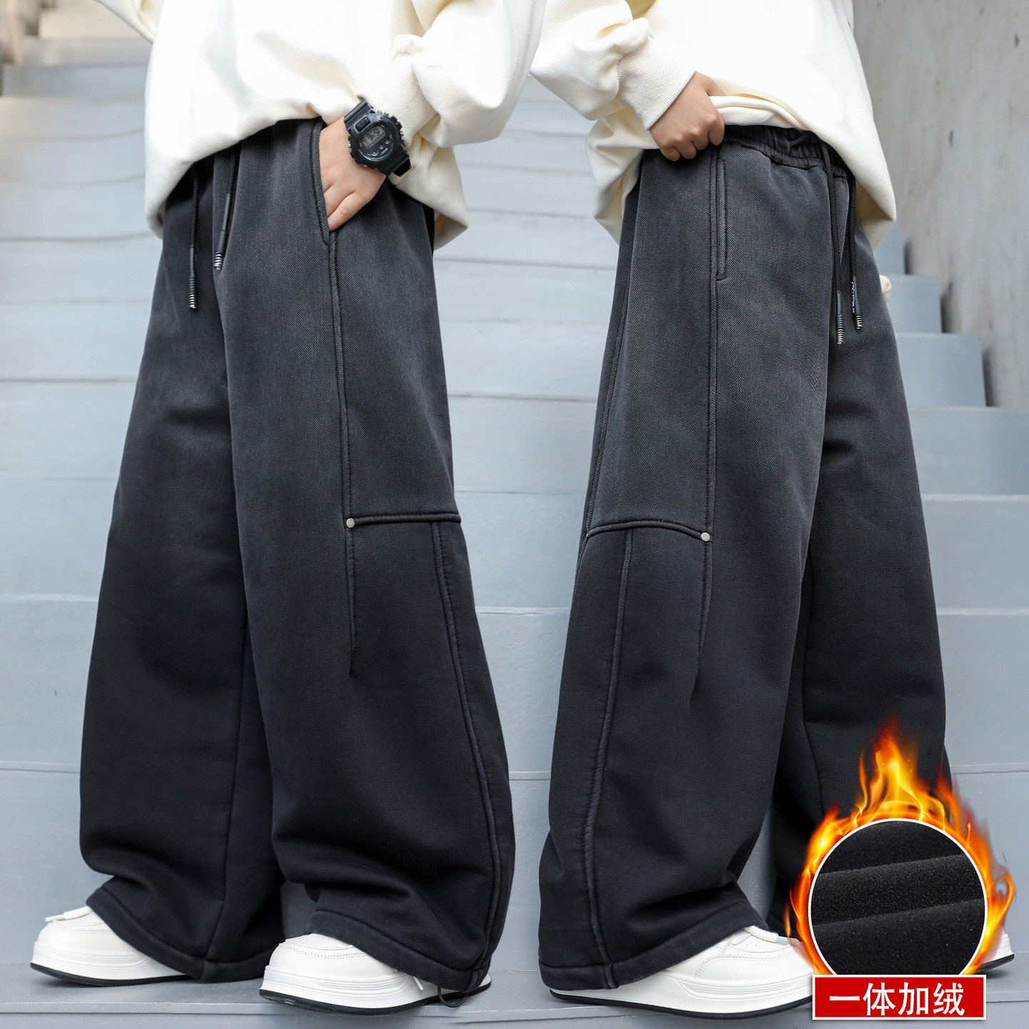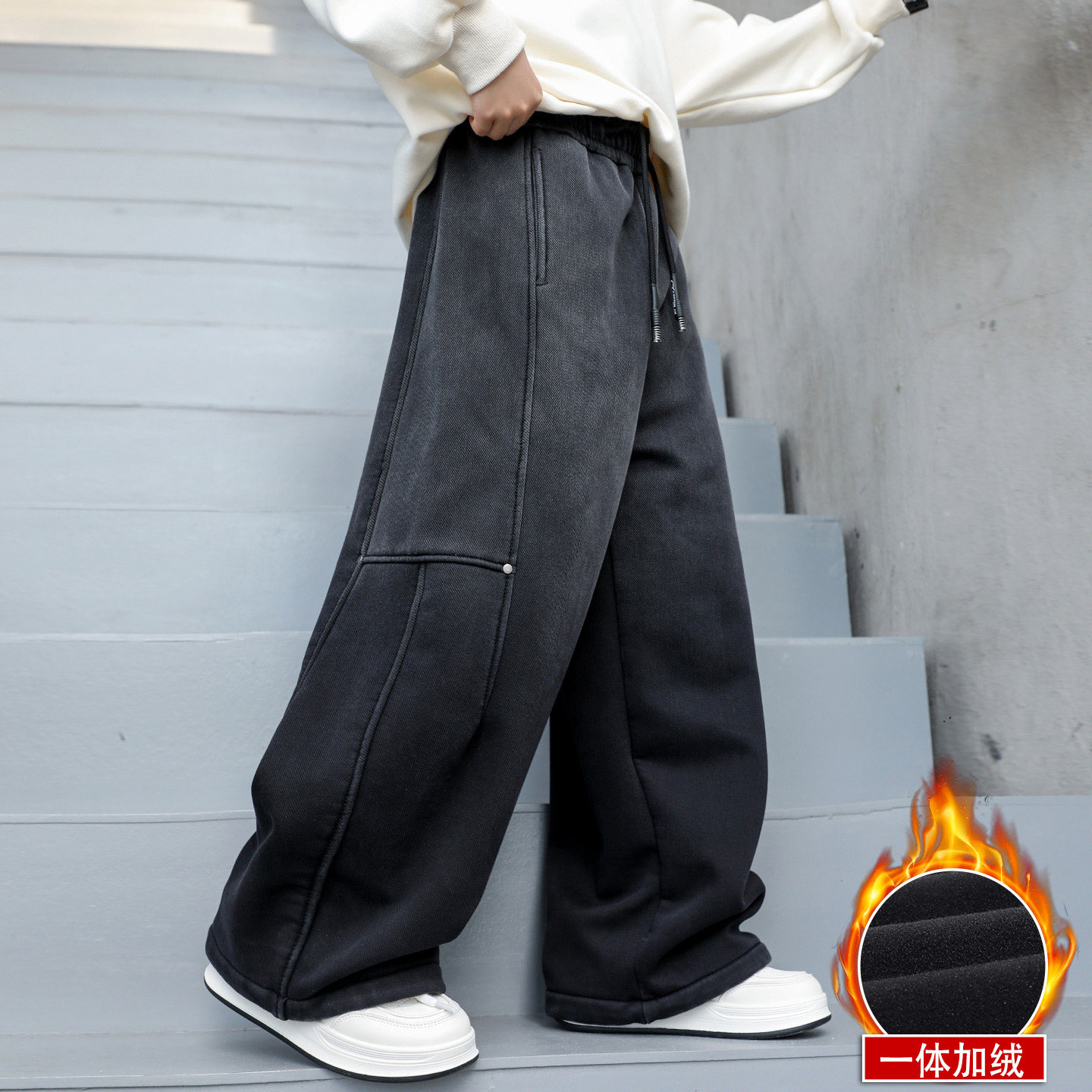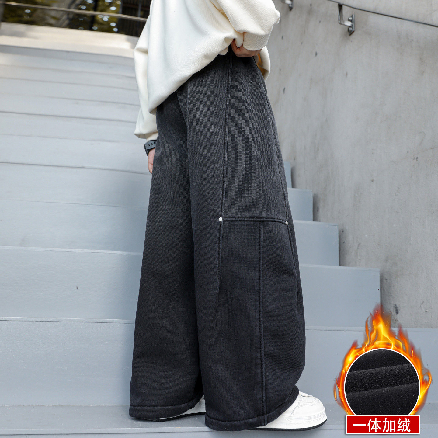 📚 男童加绒牛仔裤冬季2025新款中大儿童一体绒加厚保暖冬装直筒裤子