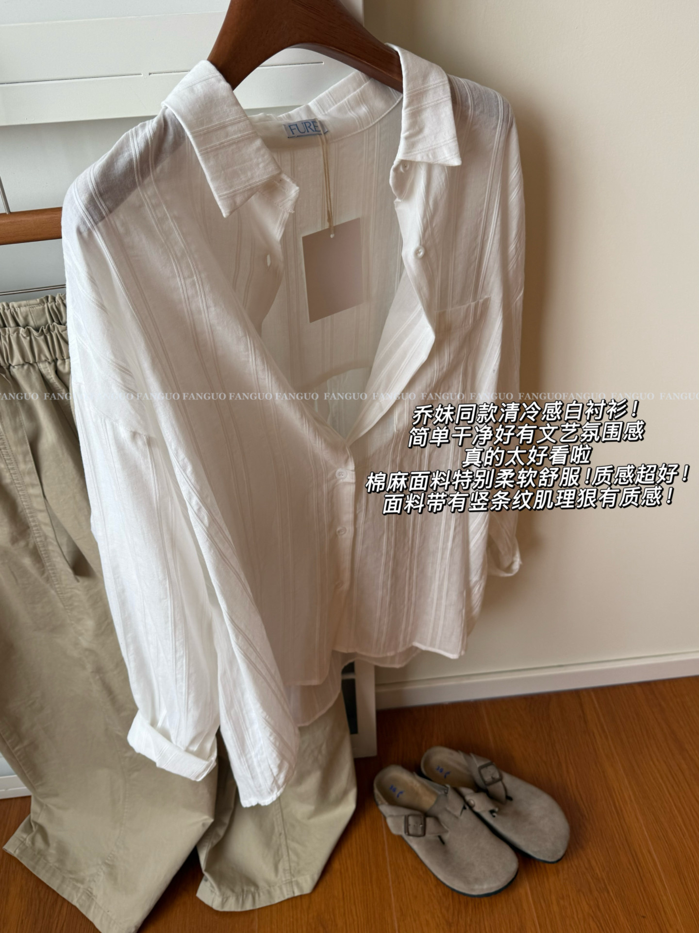 📚 宋慧乔同款fure 简约高级松弛 棉麻褶皱机理感休闲防晒衬衫女包邮