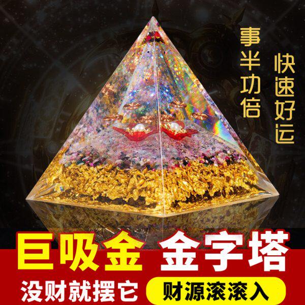 📚 黄水晶金字塔聚财金字塔模型水晶球摆件碎石工艺品家居装饰品能量