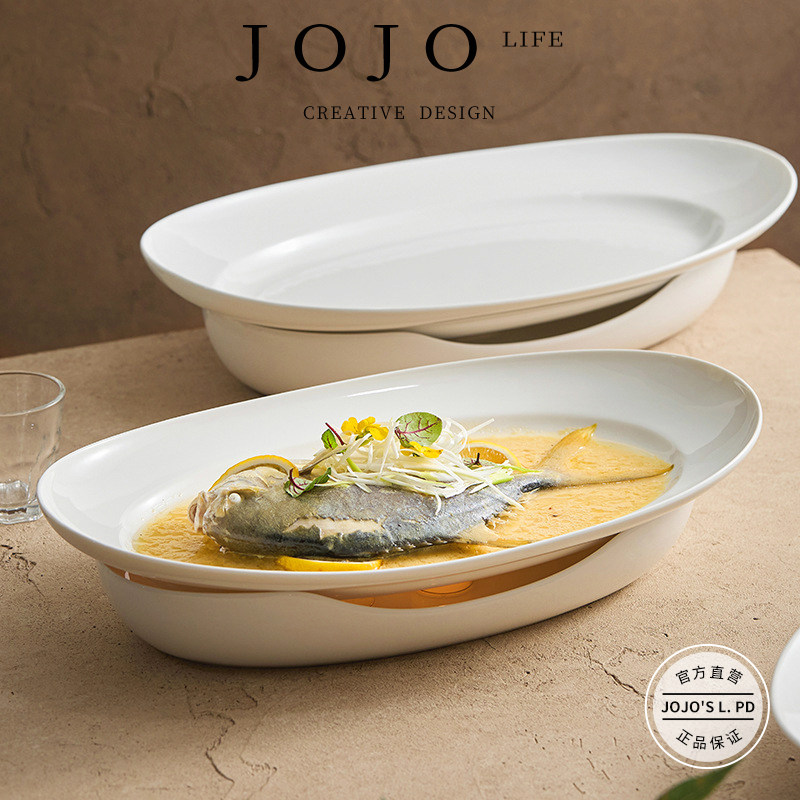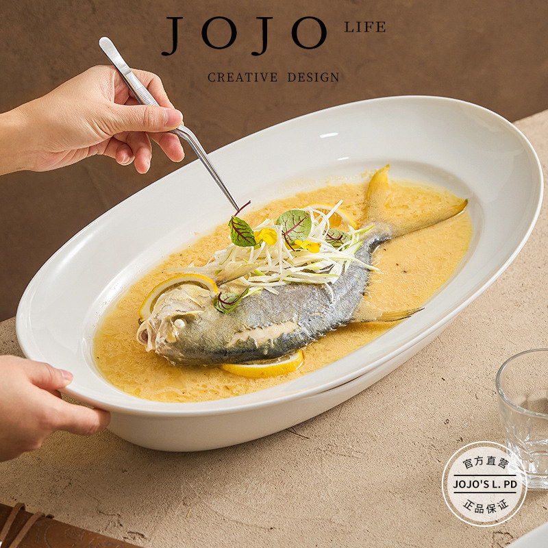 📚 JOJO'S L. PD.steel.保温蒸鱼盘酒店饭店专用陶瓷盘子菜盘 | 型钢