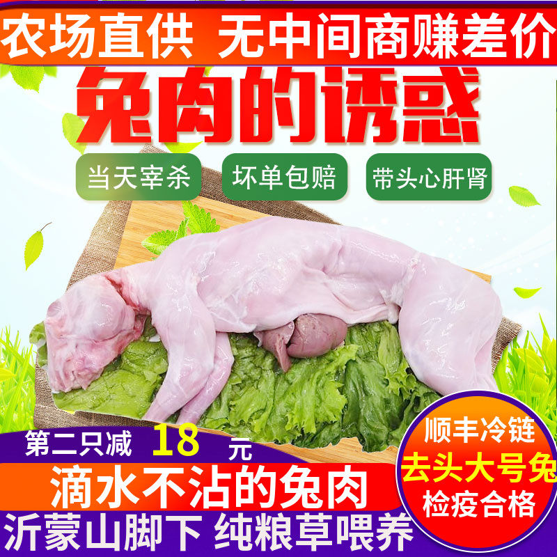 📚 新鲜兔肉整只生兔肉现杀兔子肉带头农家养真空冷冻包邮2.5斤只