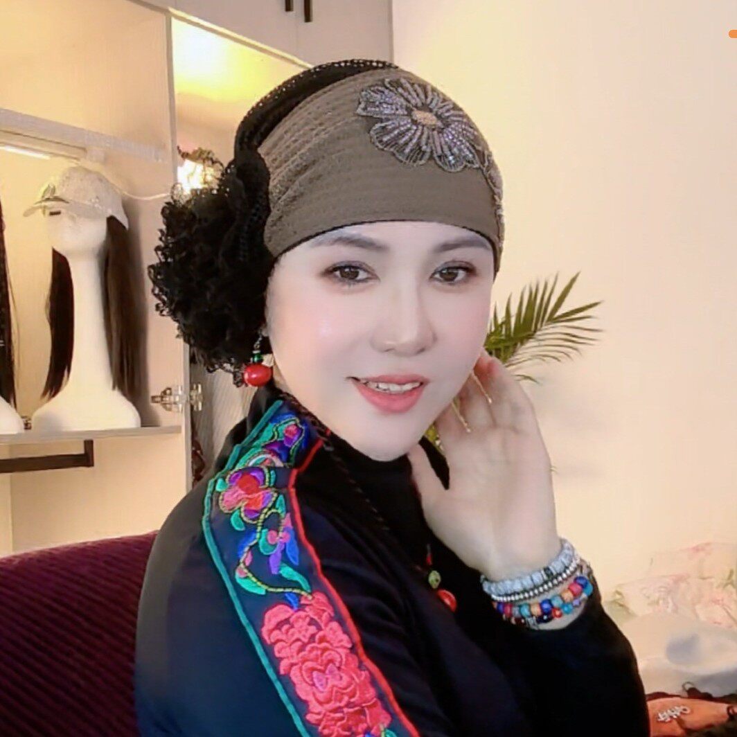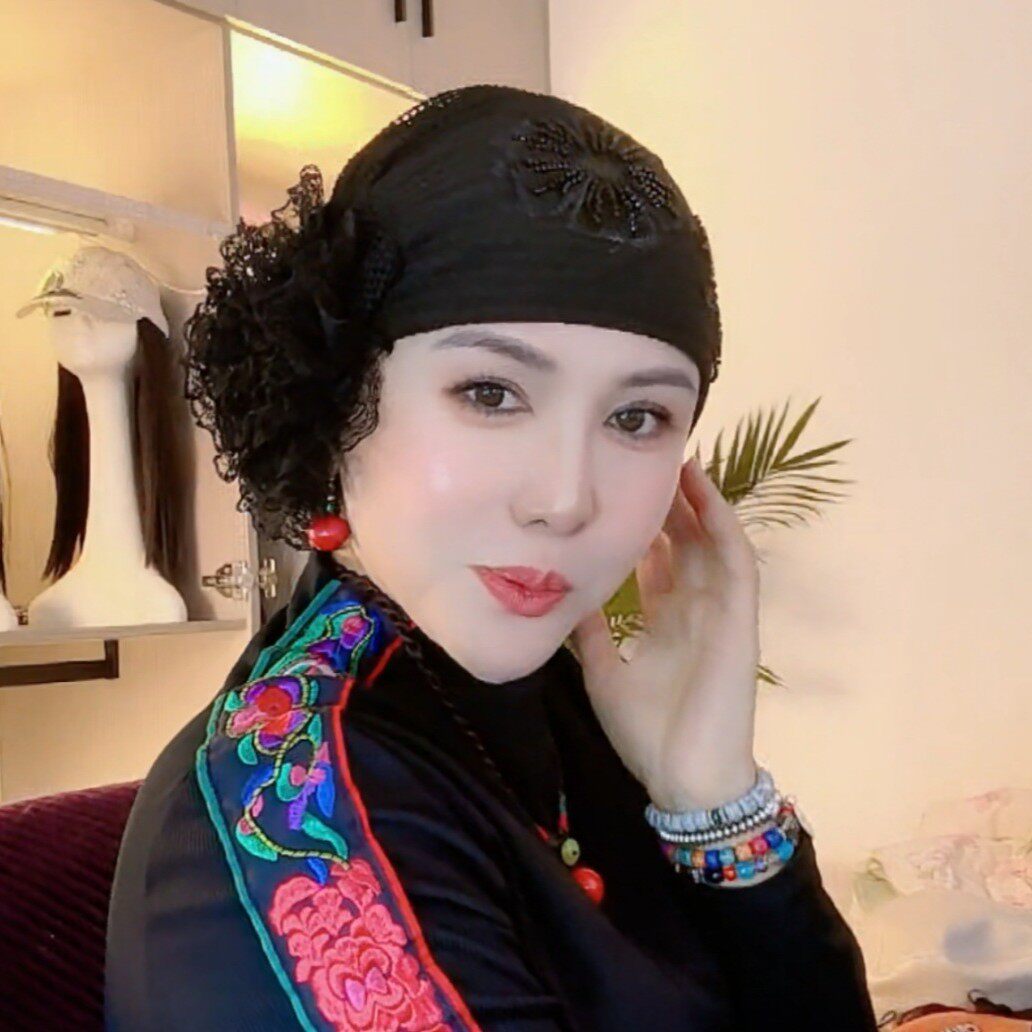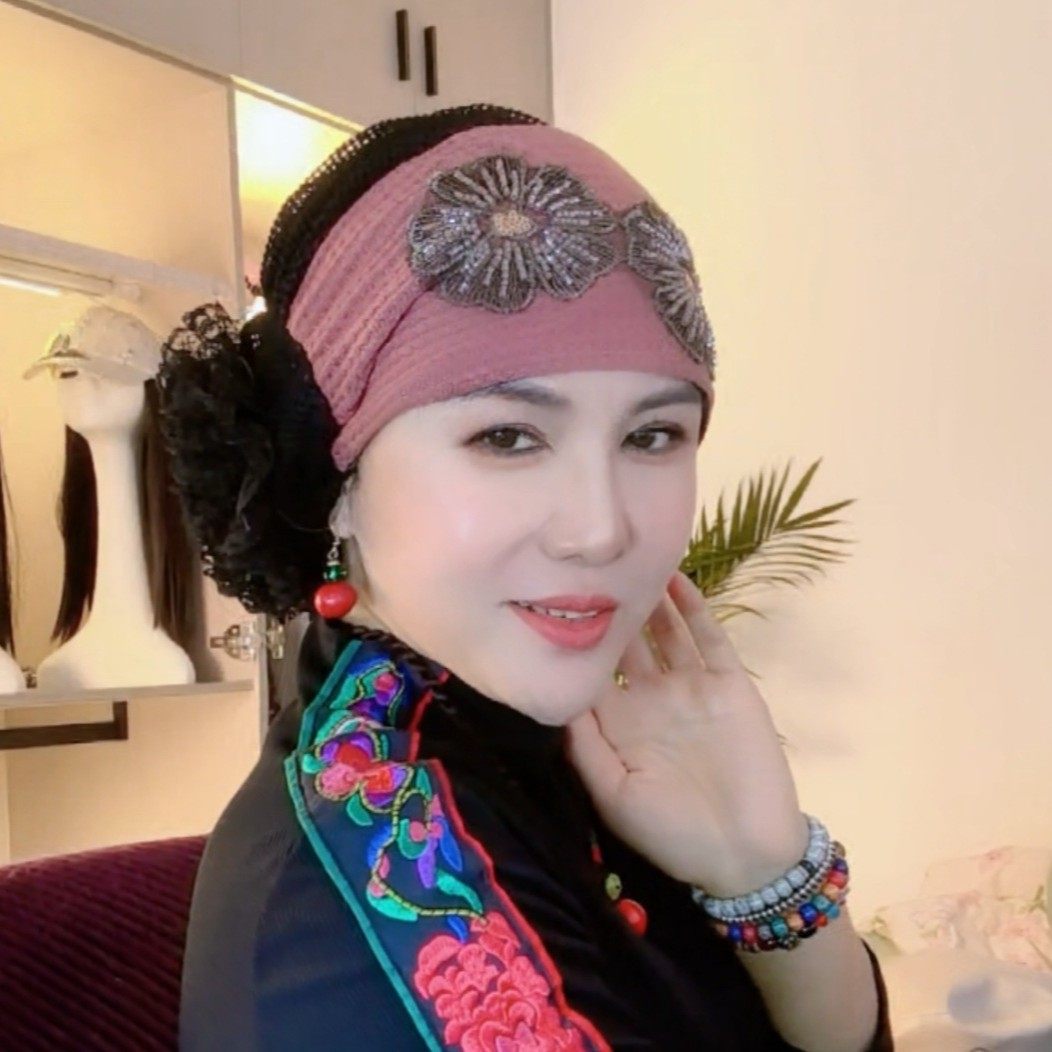 📚 遮白发包头帽女新款双花串珠亮片发带帽头饰帽民族风头巾帽减龄