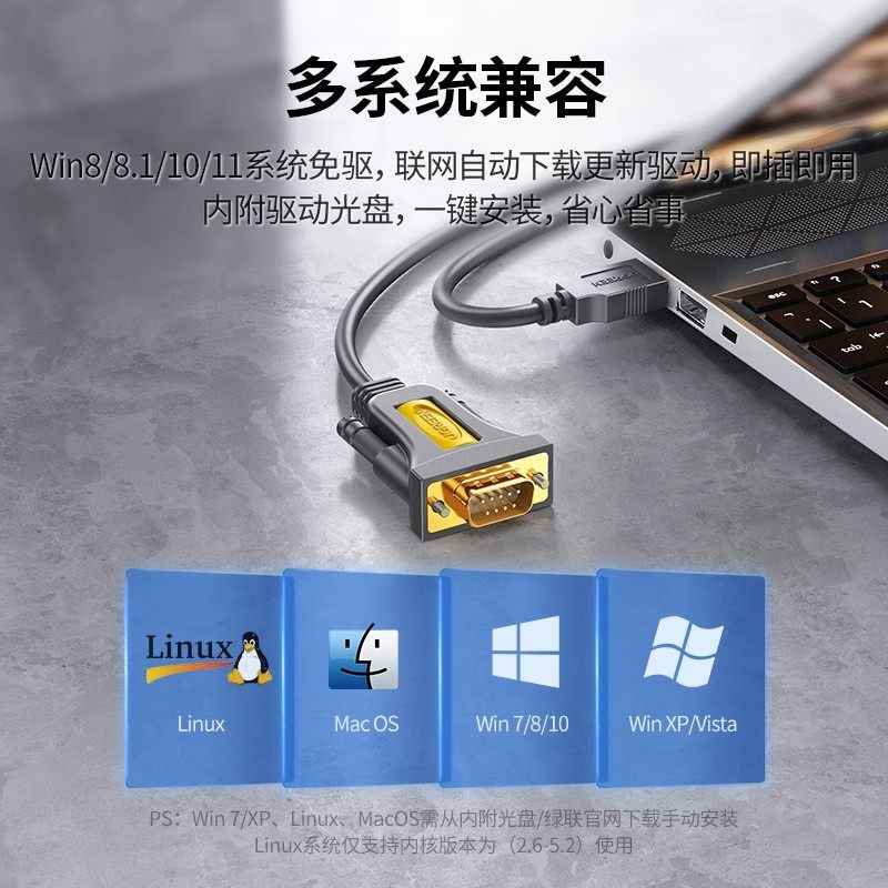 📚 绿联usb转rs232com串口线9针九针typec连接电脑打印串口数据线收银机db公对公母usb转串口线工业级接头一拖二