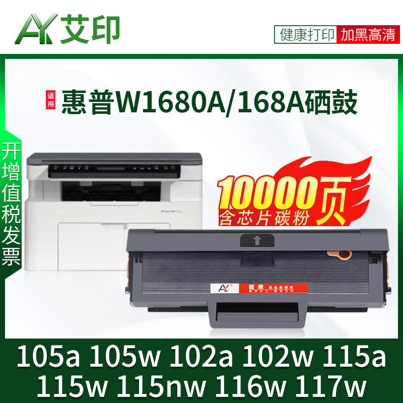 📚 适用惠普105a硒鼓HP105w MFP115a/w/nw 116w 117w 102w/a W1680A易加粉168a激光打印机粉盒laser墨盒碳粉墨粉