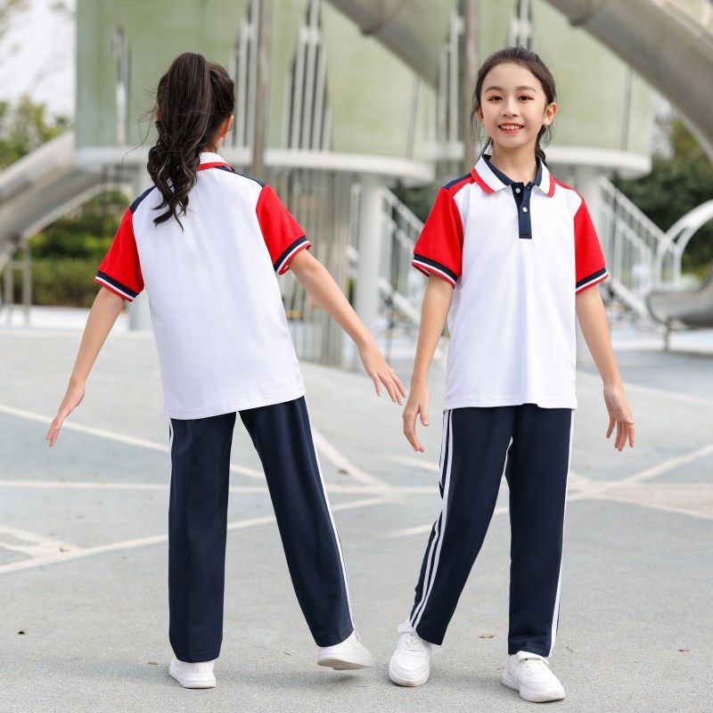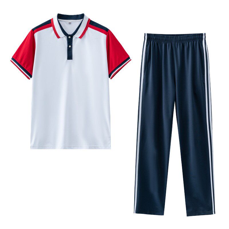 📚 夏季白红色初高中校服套装学生班服中性休闲情侣运动风长裤子定制