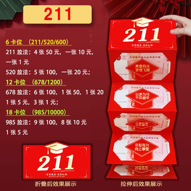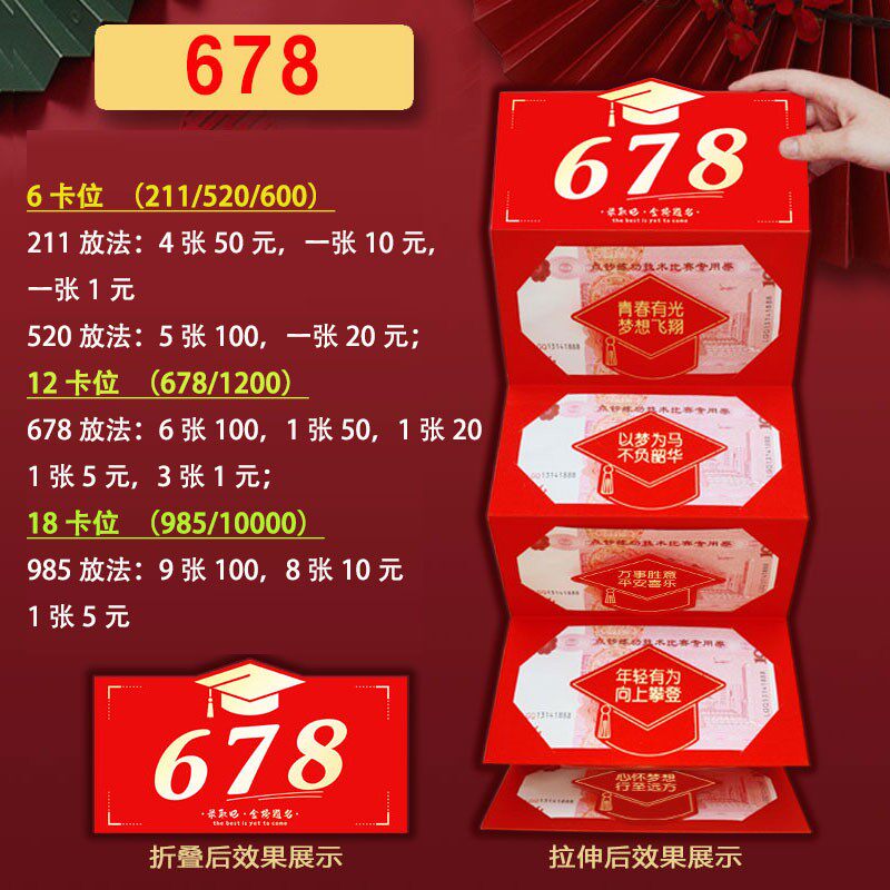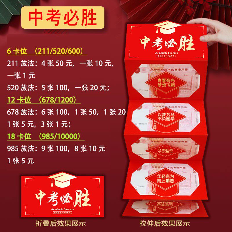 📚 送中考生中考必胜678高考985高考必胜211金榜题名折叠款创意红包
