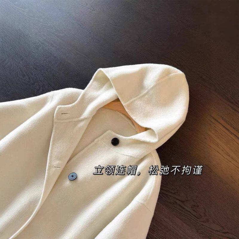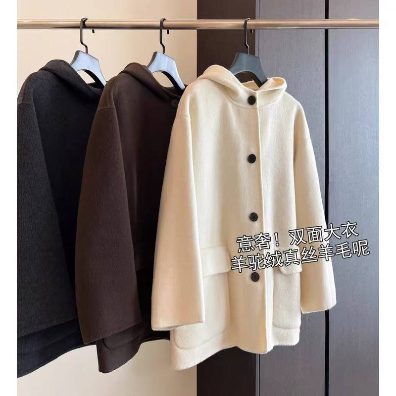 📚 重磅实穿 女装羊驼绒真丝羊毛连帽毛呢外套短款呢子大衣Y0702T