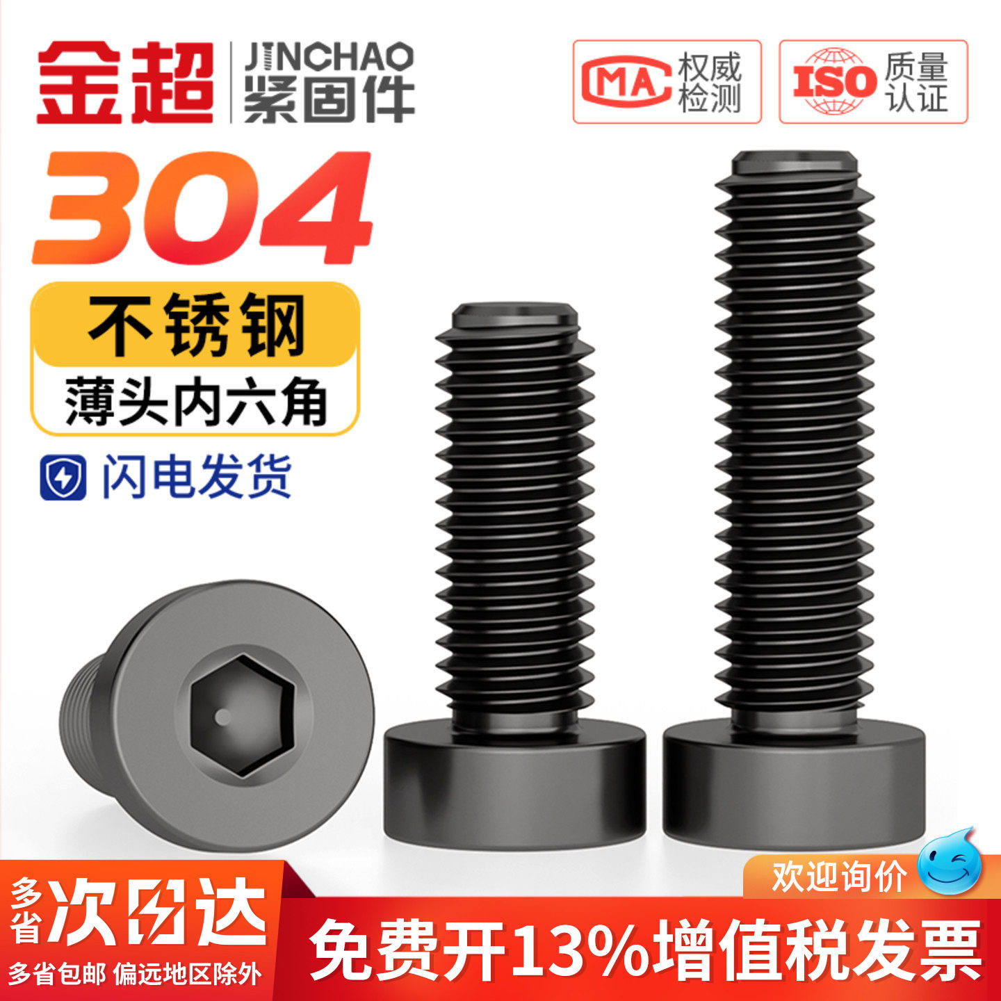 📚 黑色304不锈钢薄头内六角螺丝钉DIN7984矮头加长螺栓M3M4M5M6-M12