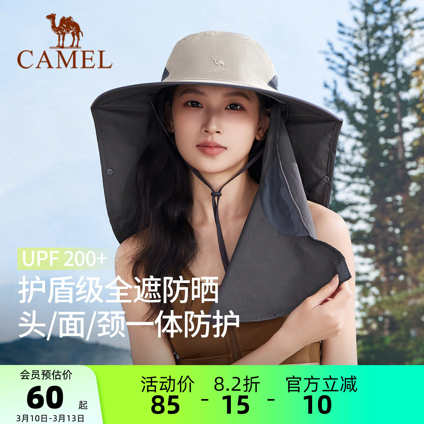 📚 骆驼全方位防晒渔夫帽男户外钓鱼帽遮阳面罩护颈帽子一体登山帽女