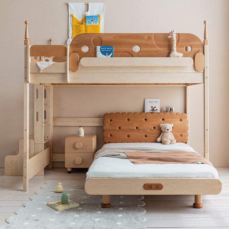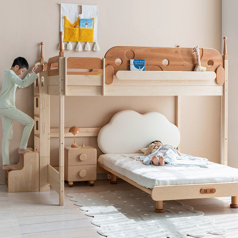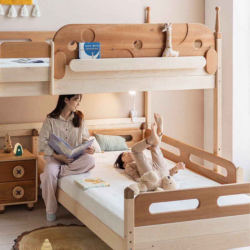 📚 上形孩在 树屋错位双层床上下铺子母床全实木T型组合床