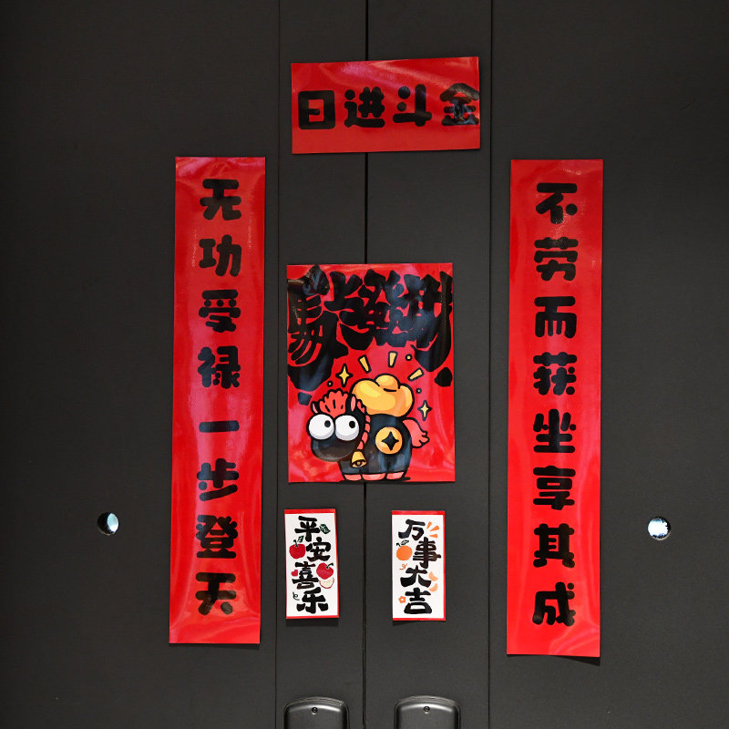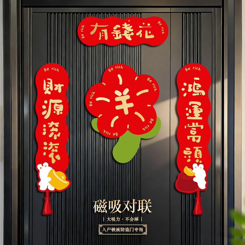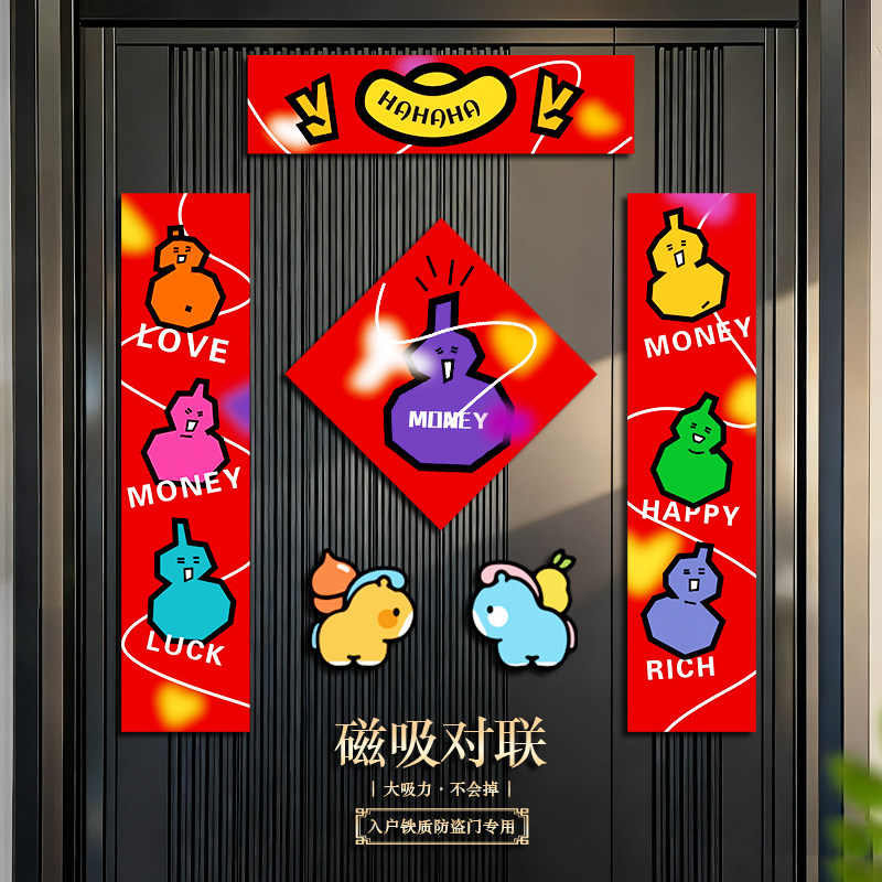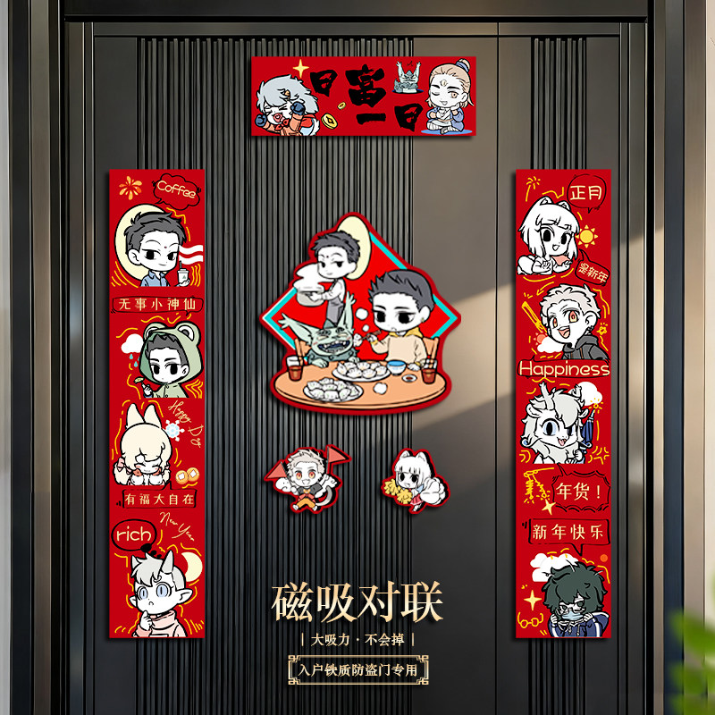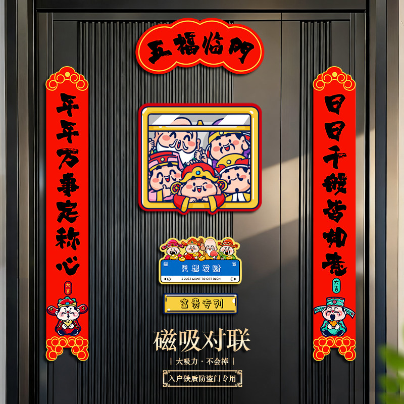 📚 新年五福临门对联创意磁吸门贴不伤门喜庆氛围布置装饰用品入户门