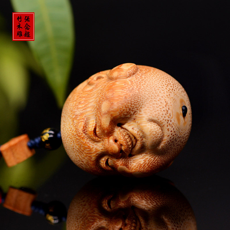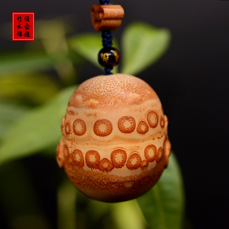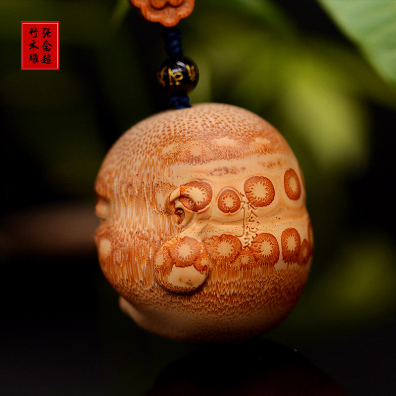 📚 竹根雕弥勒佛手球笑口常开手把件满钉竹雕皆大欢喜手球挂件吊坠