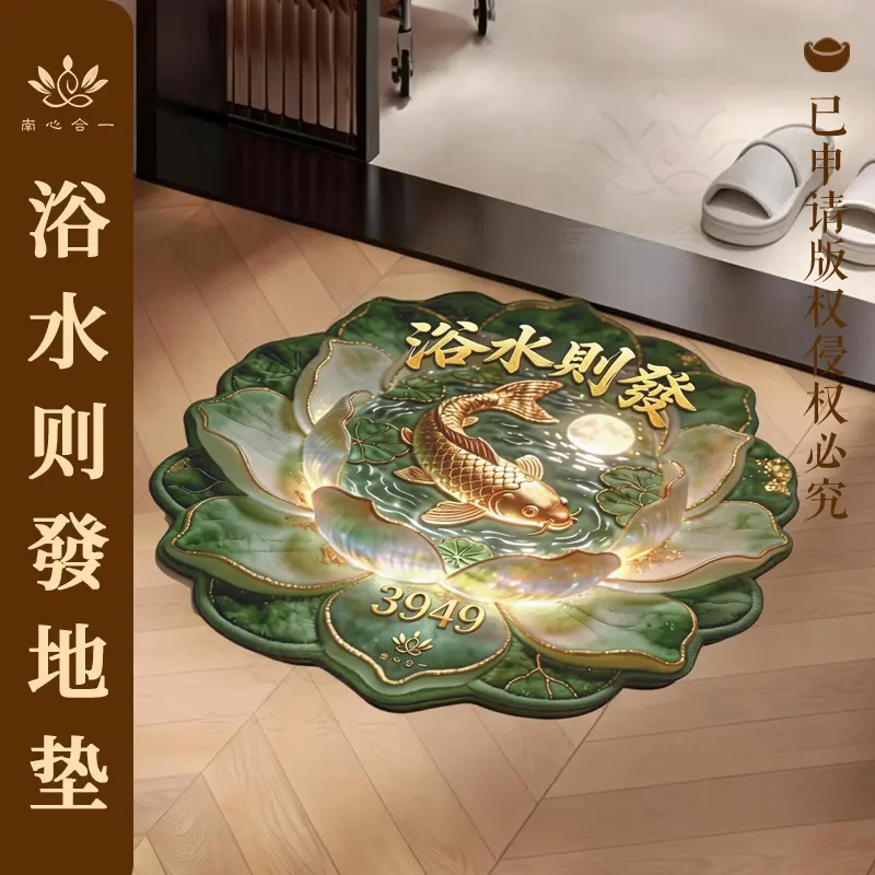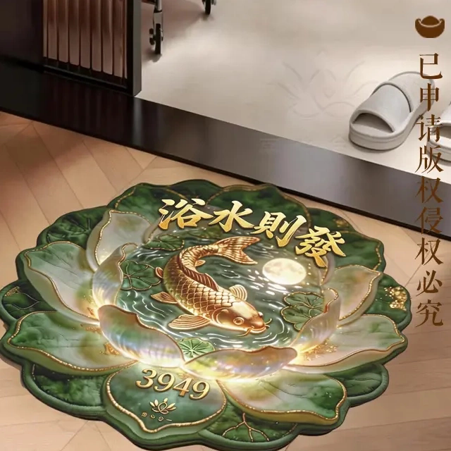 📚 【浴水则發地垫】硅藻泥科技绒地垫卫生间浴室门口地垫莲花锦鲤寓