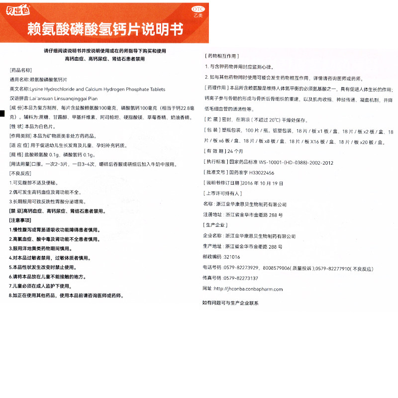 📚 贝出色赖氨酸磷酸氢钙片*108片/盒0.1g:促进幼儿儿童口服OTC复合