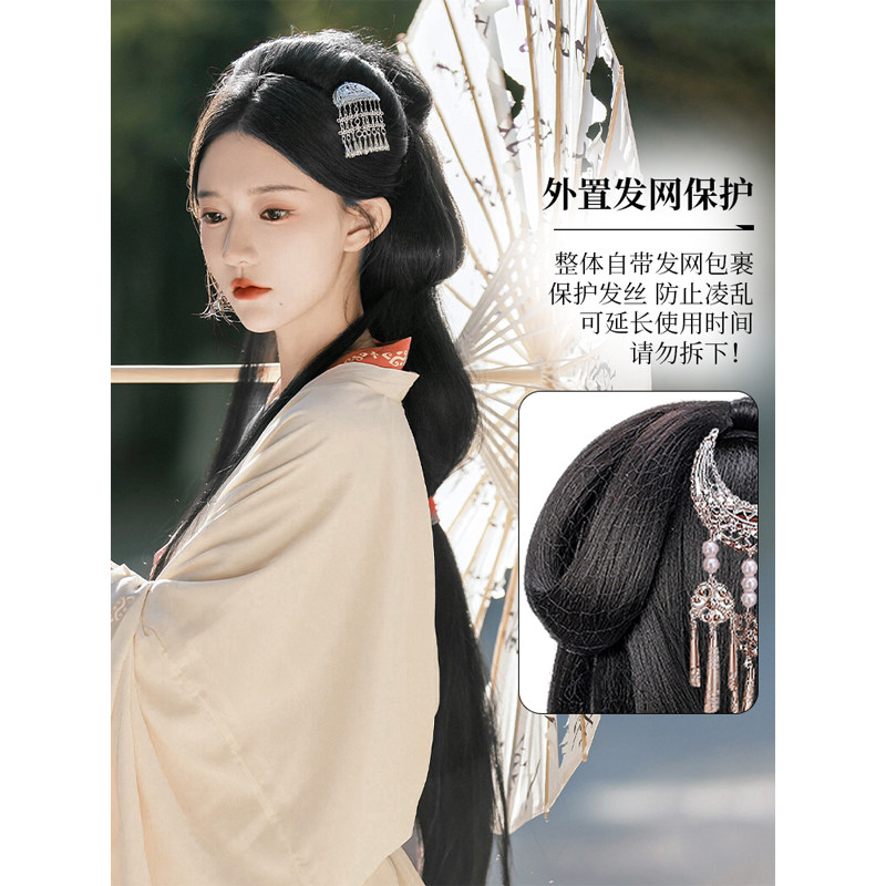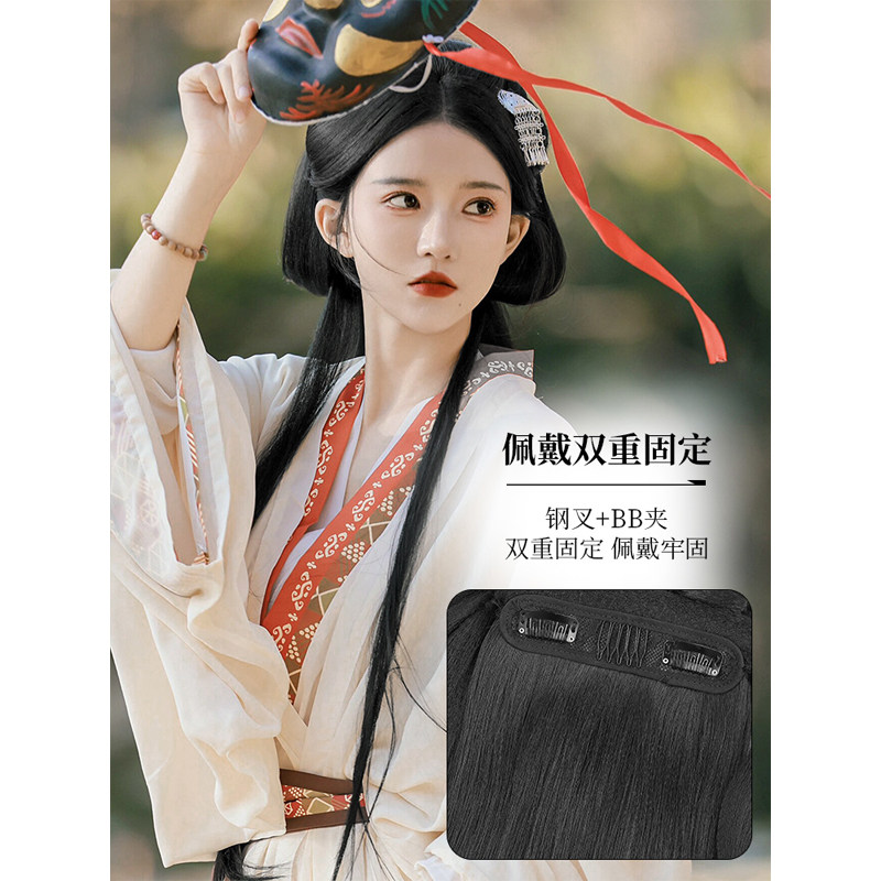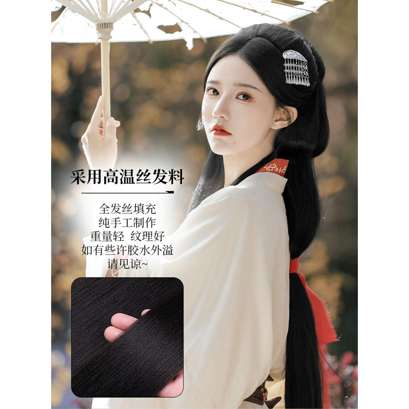 📚 战国袍假发汉服头饰女古风一体式全套后压盘发垫发包古装日常发髻
