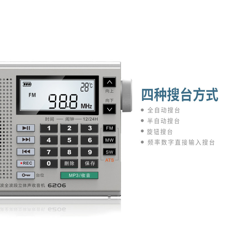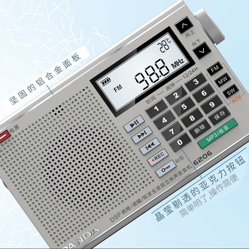 📚 PANDA/熊猫 6206全波段收音机老人便携充电插卡数字调谐台式收音