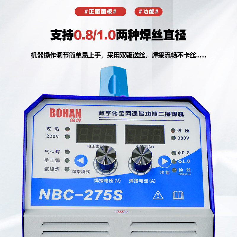 📚 双驱送丝机便携式双电压伯焊NBC-275S一体式无气二保焊机带手工焊