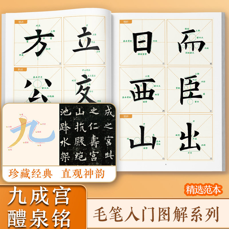 📚 墨点字帖 《九成宫醴泉铭》入门图解 毛笔碑帖单字放大视频教程笔法教学毛笔书法临摹字帖欧阳询初学者入门