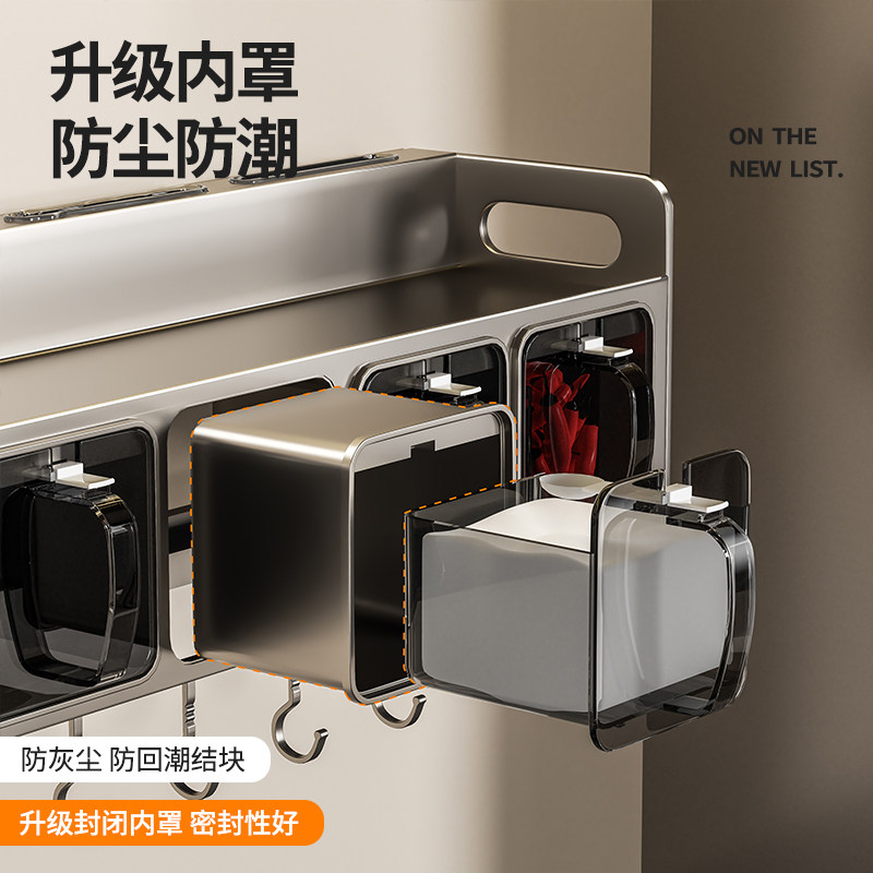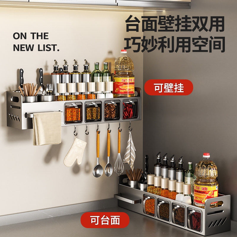 📚 厨房调料置物架高端家用免打孔墙挂式油盐酱醋收纳架调味盒罐架子