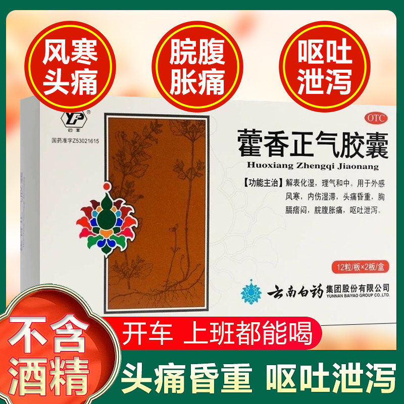 📚 云南白药藿香正气胶囊无酒精搭正气水霍香老牌子官方旗舰店正品AZ